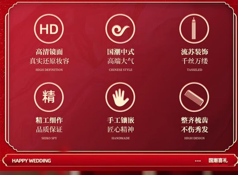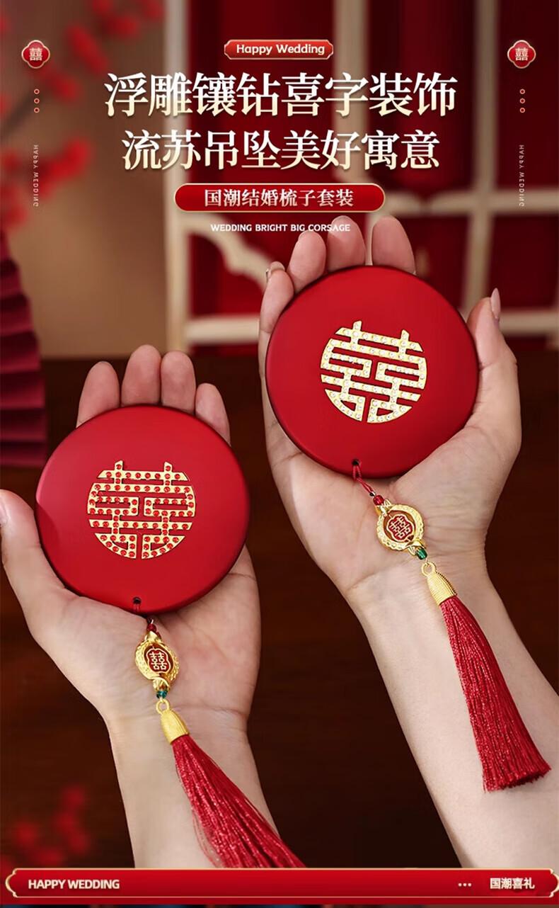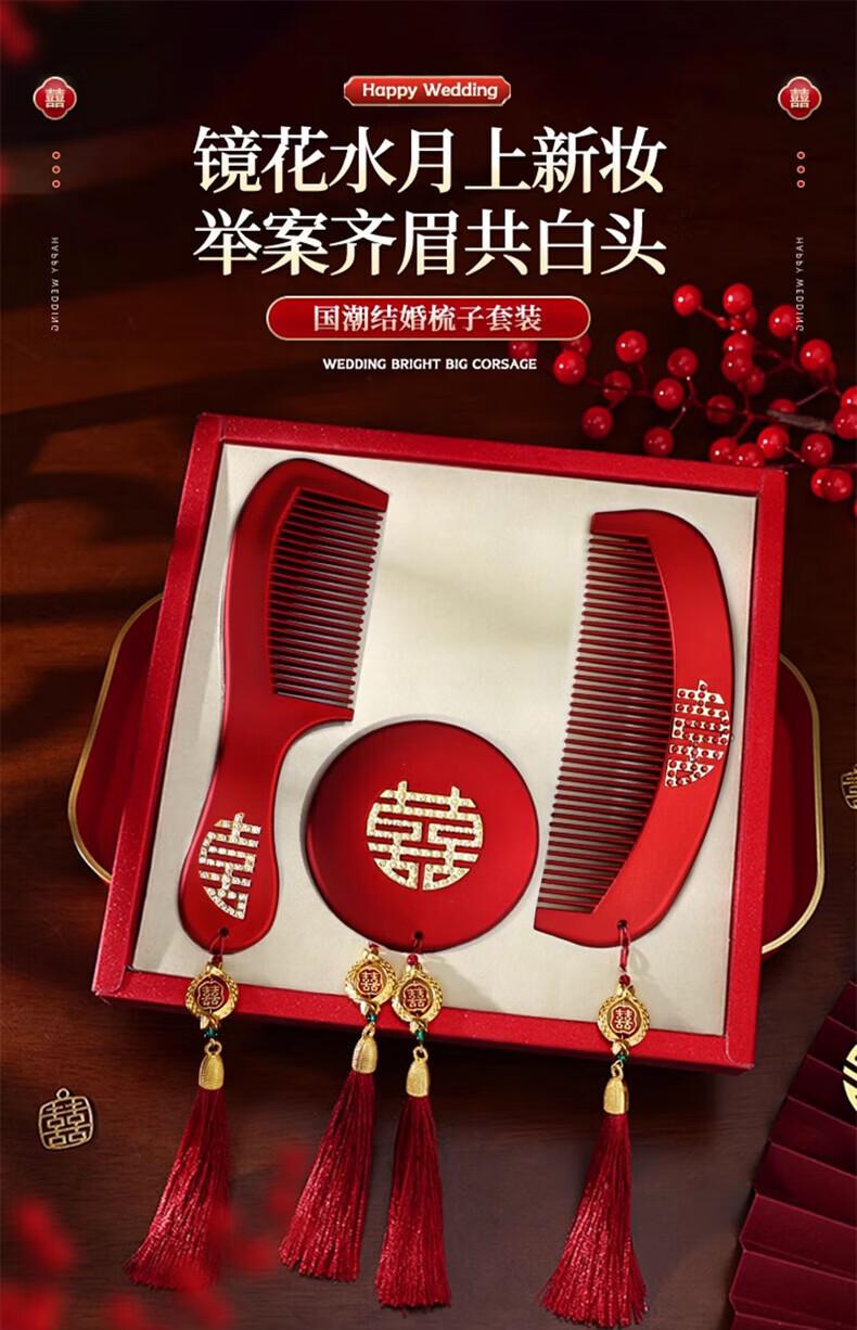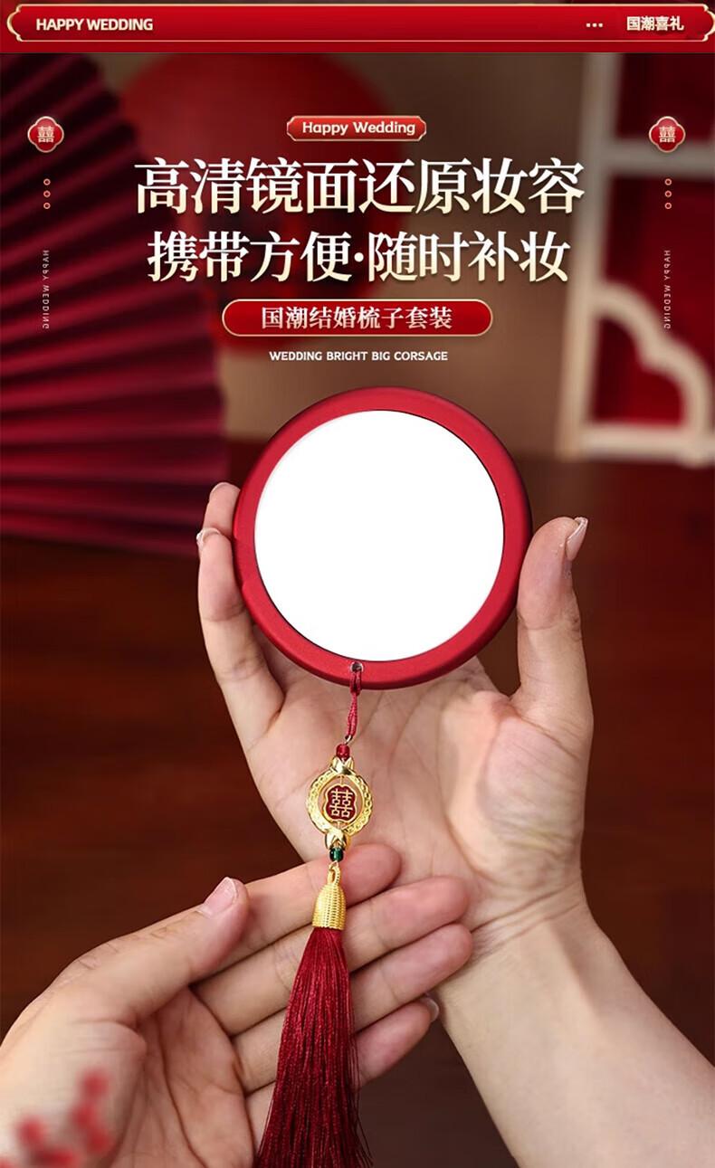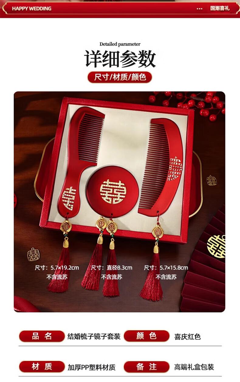 Espejo de peine para boda Un par de trajes de combinación de dote Caja de regalo de boda roja Suministros de boda para novia Espejo Daquan