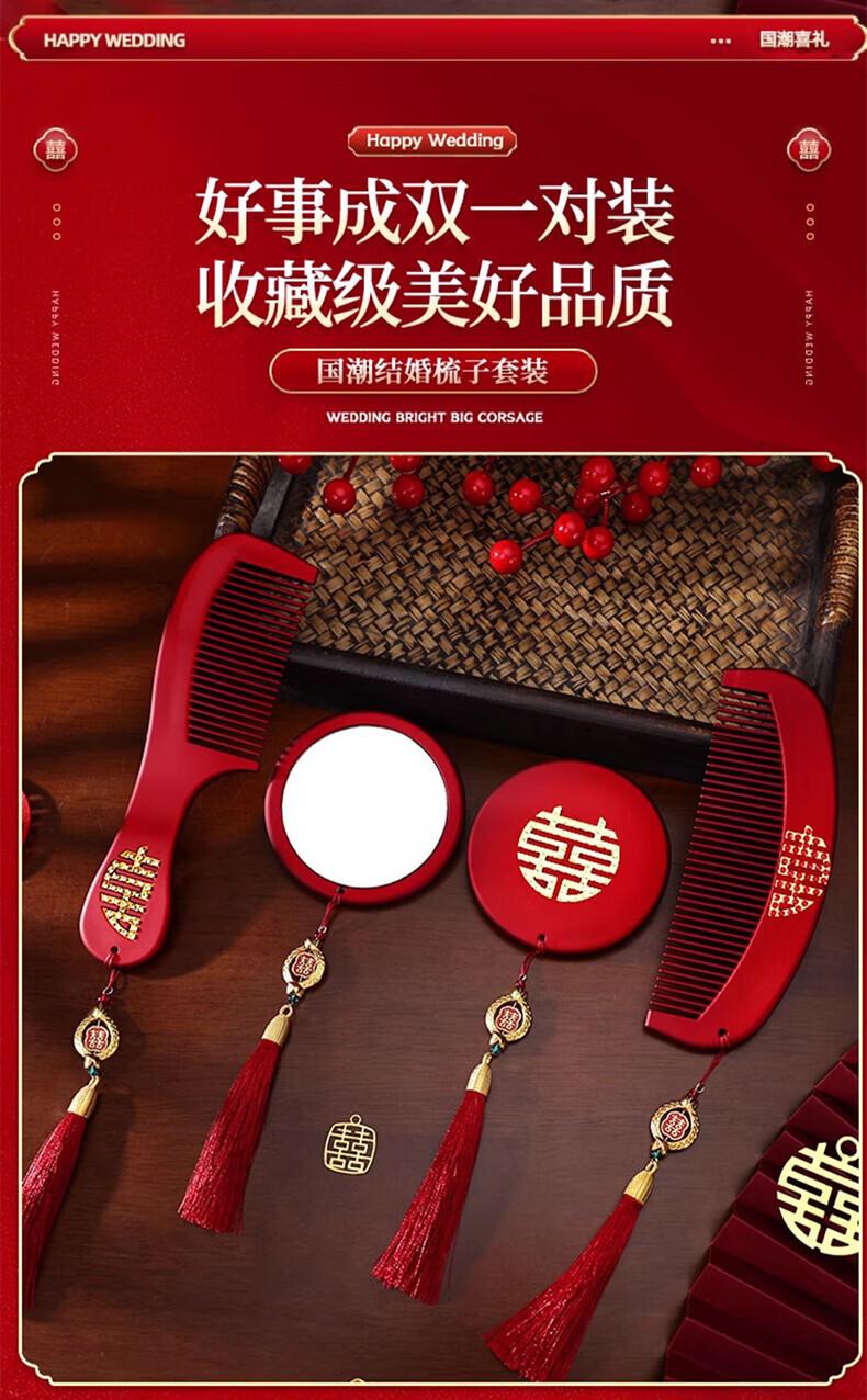 Comb gift box, Mirror comb gift box, 【double happiness】a pair of combs, 【double happiness】a pair of combs and ...