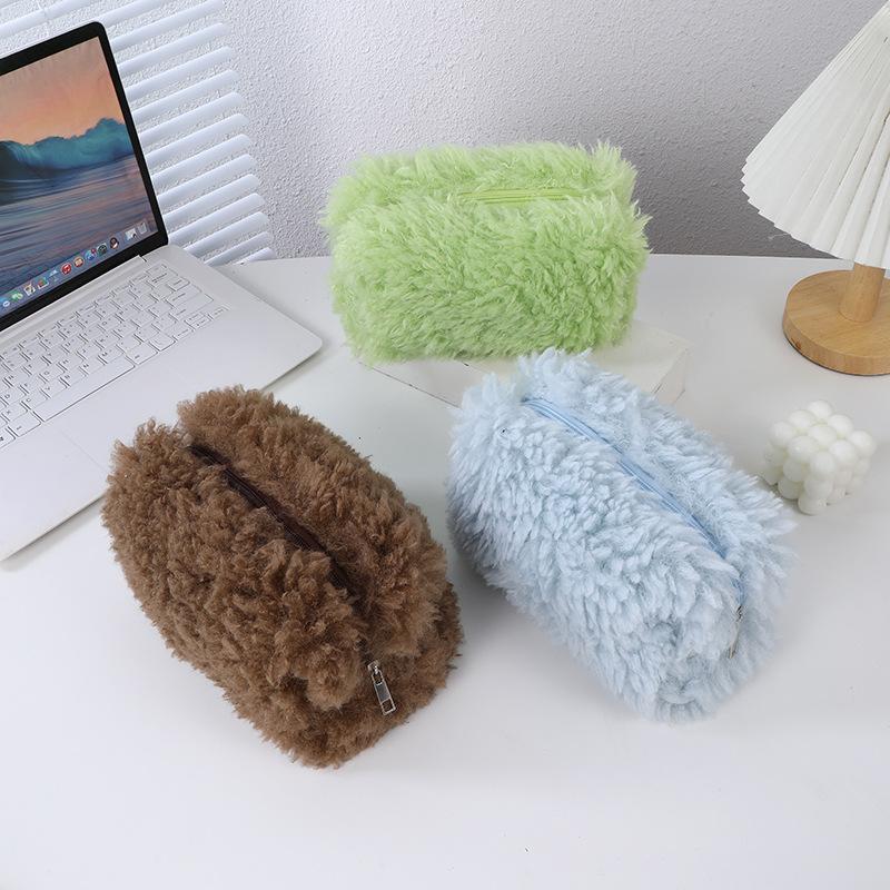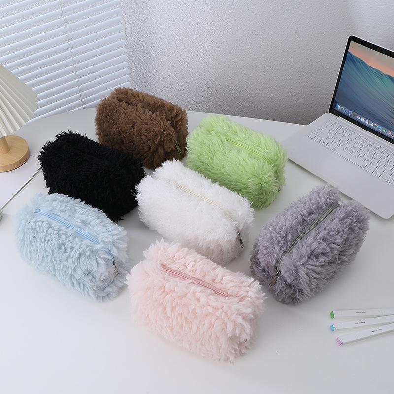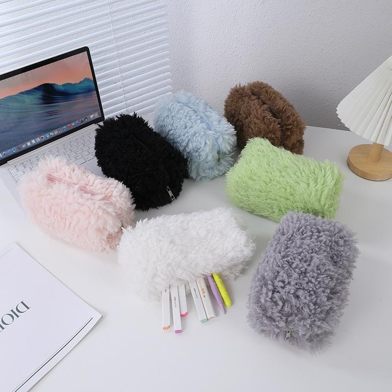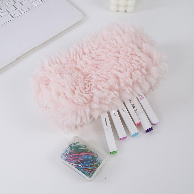Estuche para lápices de felpa súper suave y súper largo, lindo bolso de almacenamiento, papelería de aprendizaje, estuche para lápices portátil de gran capacidad para estudiantes