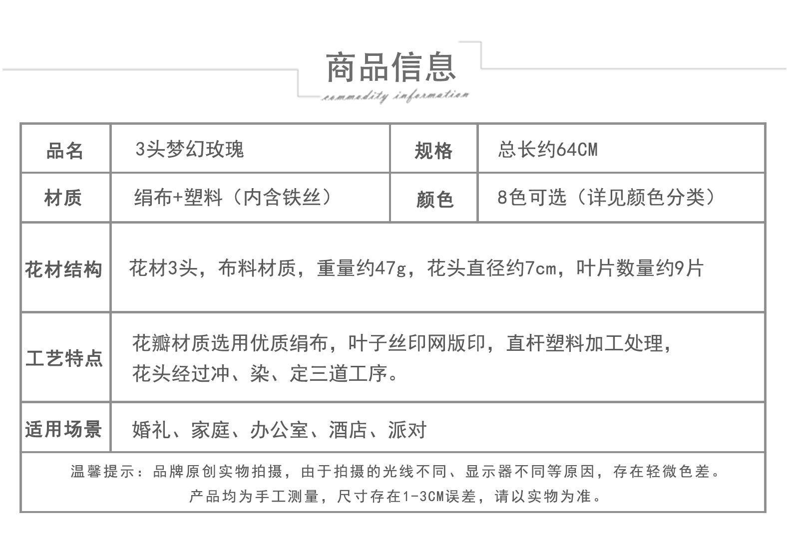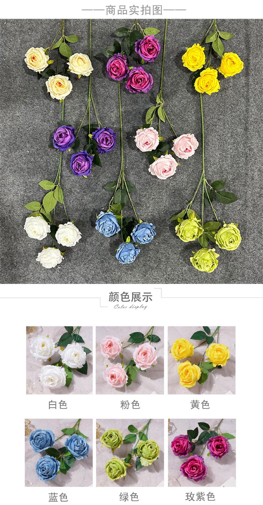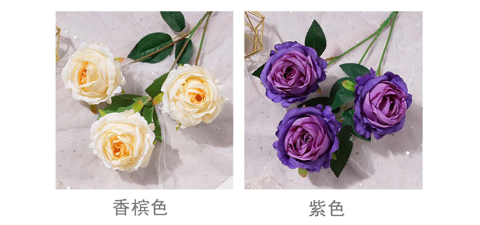 Rosa Fantasía de 3 Cabezas Flor Artificial Flor Artificial Flor Hecha a Mano Flor de Boda Flor Artificial de Seda Decoración de Boda Arreglo de Piso