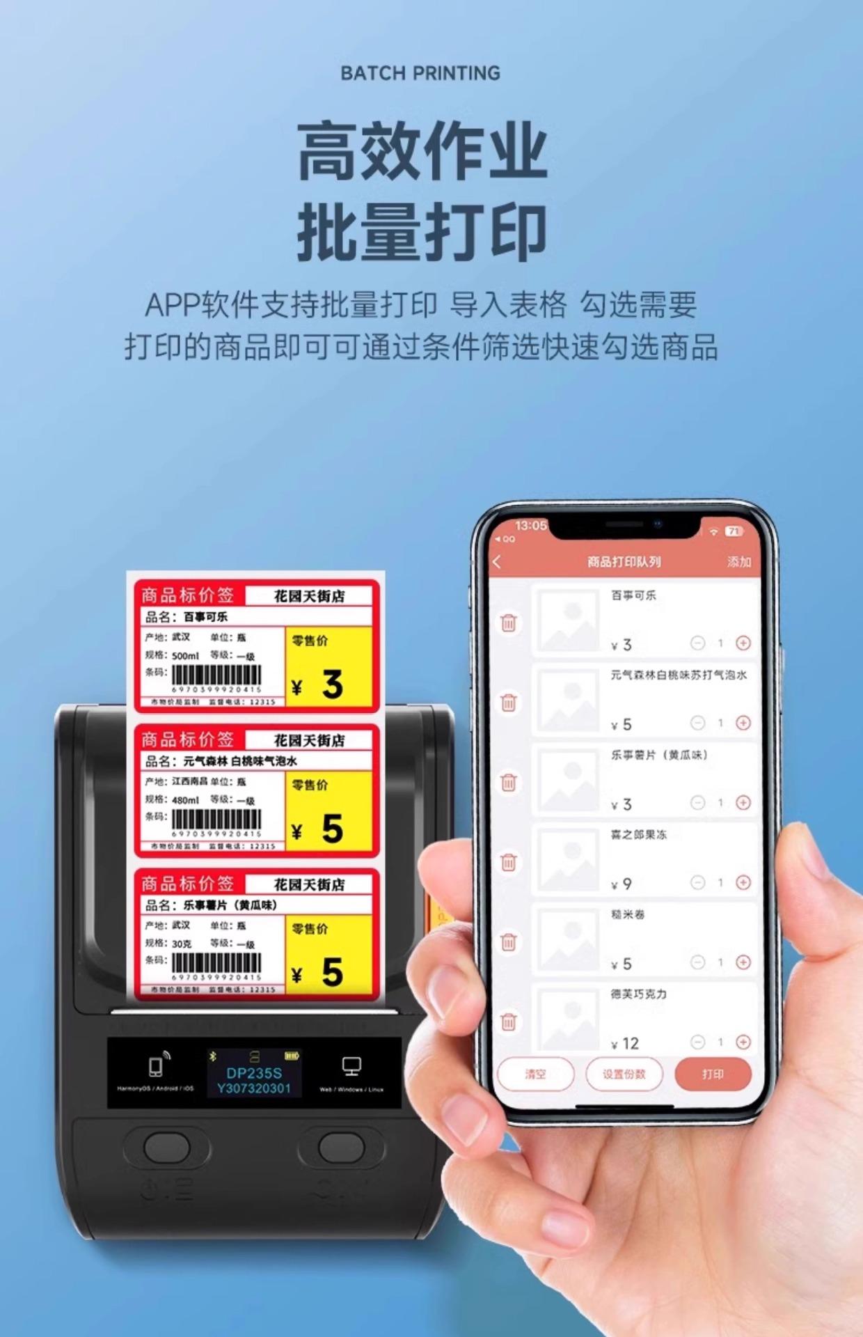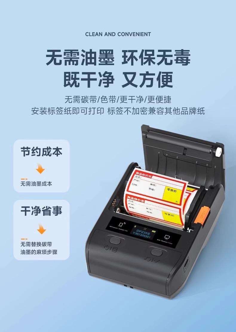 Impresora de Etiquetas de Papel Plata Asiático Detong Dp235S Oficina Etiqueta de Gran Tamaño Bluetooth Portátil de Mano Térmica