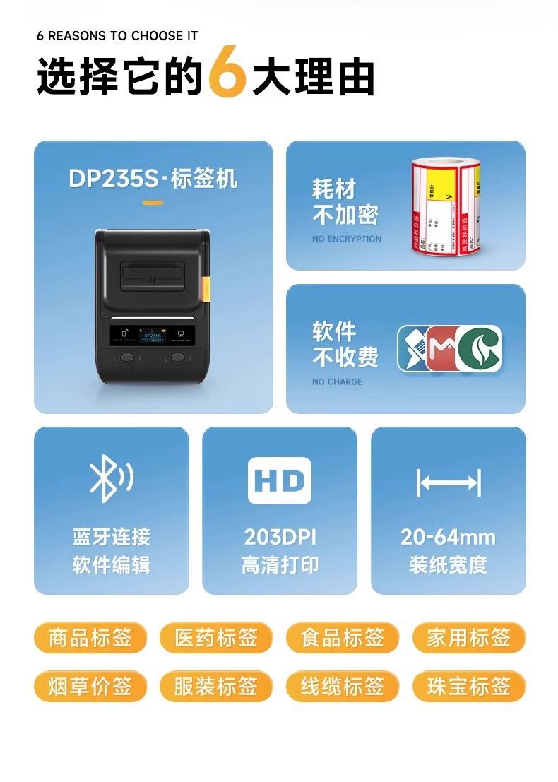 Dp235s + free 1 roll of white label [printing width within 60mm]
