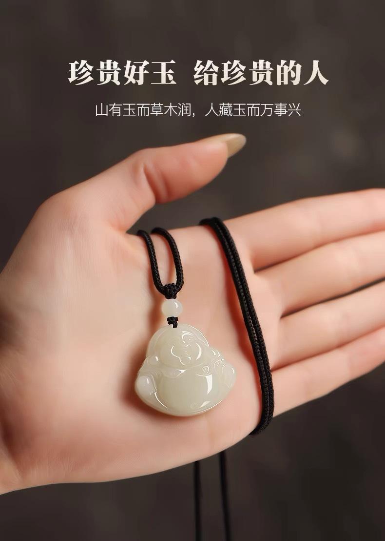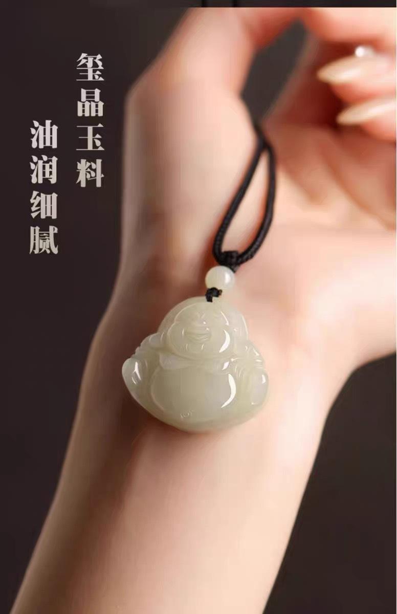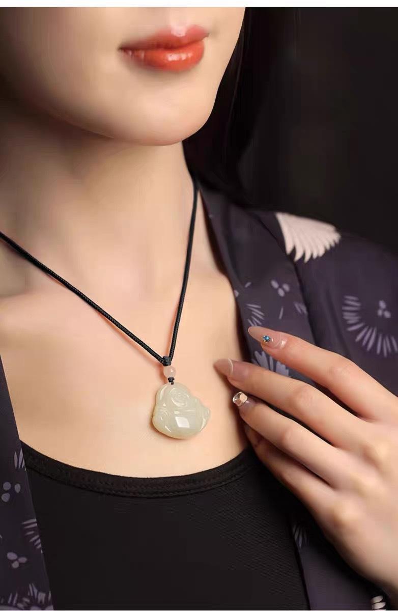 Colgante de Buda Maitreya de jade hetiano natural de Xinjiang, collar de Buda femenino, pequeño Buda de jade, colgante de cabeza de Buda de jade, regalo