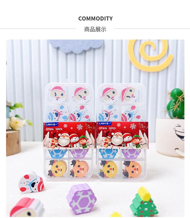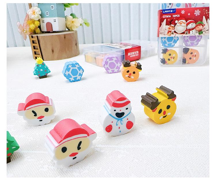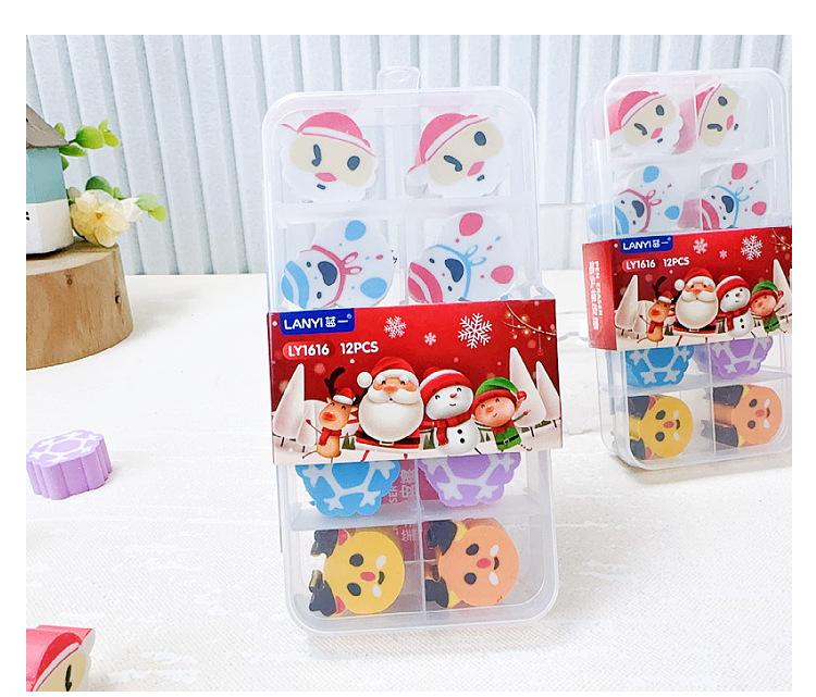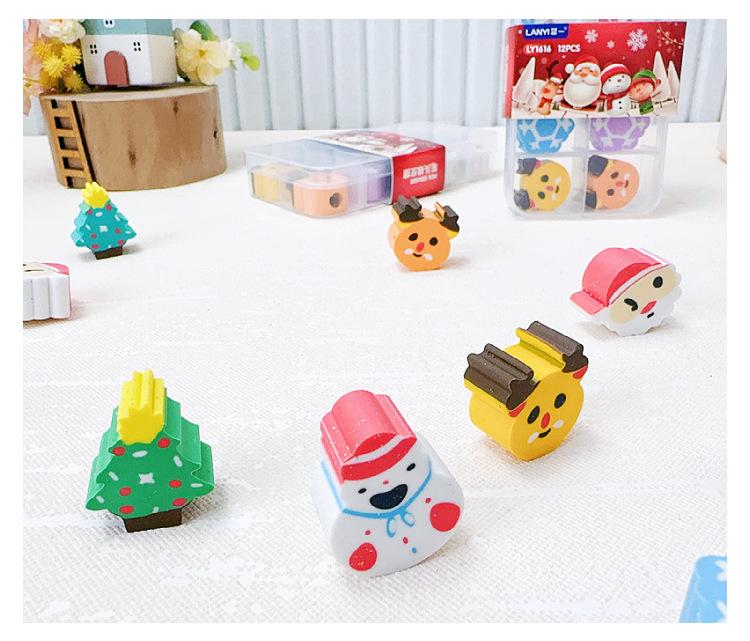 Bolígrafo navideño con forma divertida de dibujos animados, tapa de goma en caja de cuero, regalos para niños, premios, papelería, suministros de aprendizaje creativos
