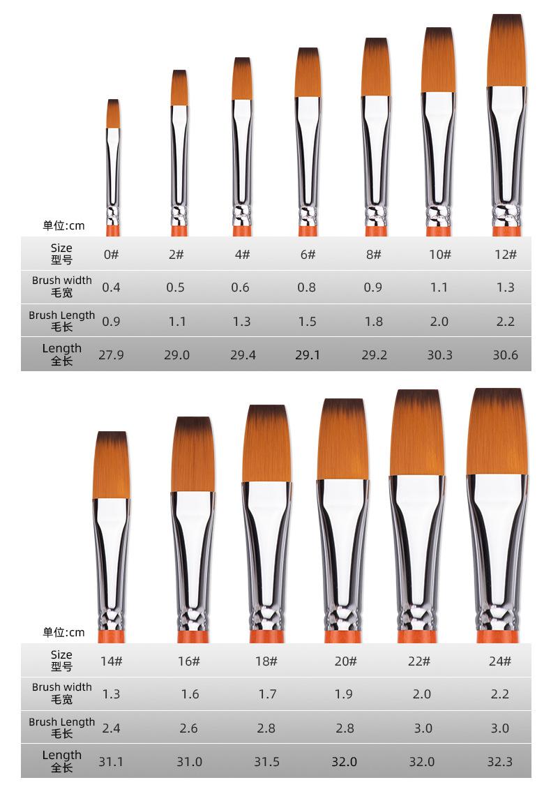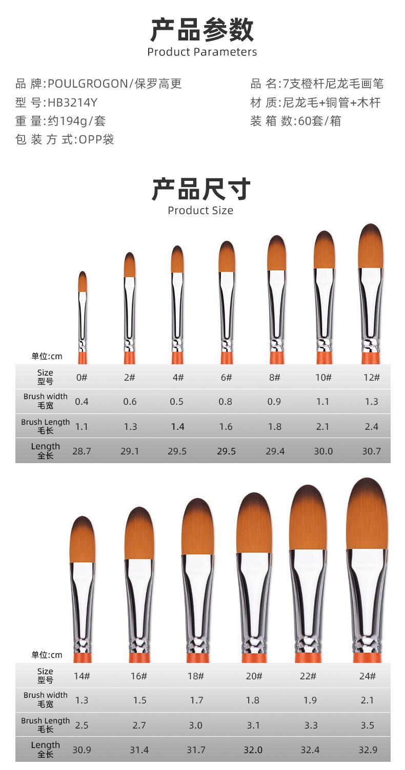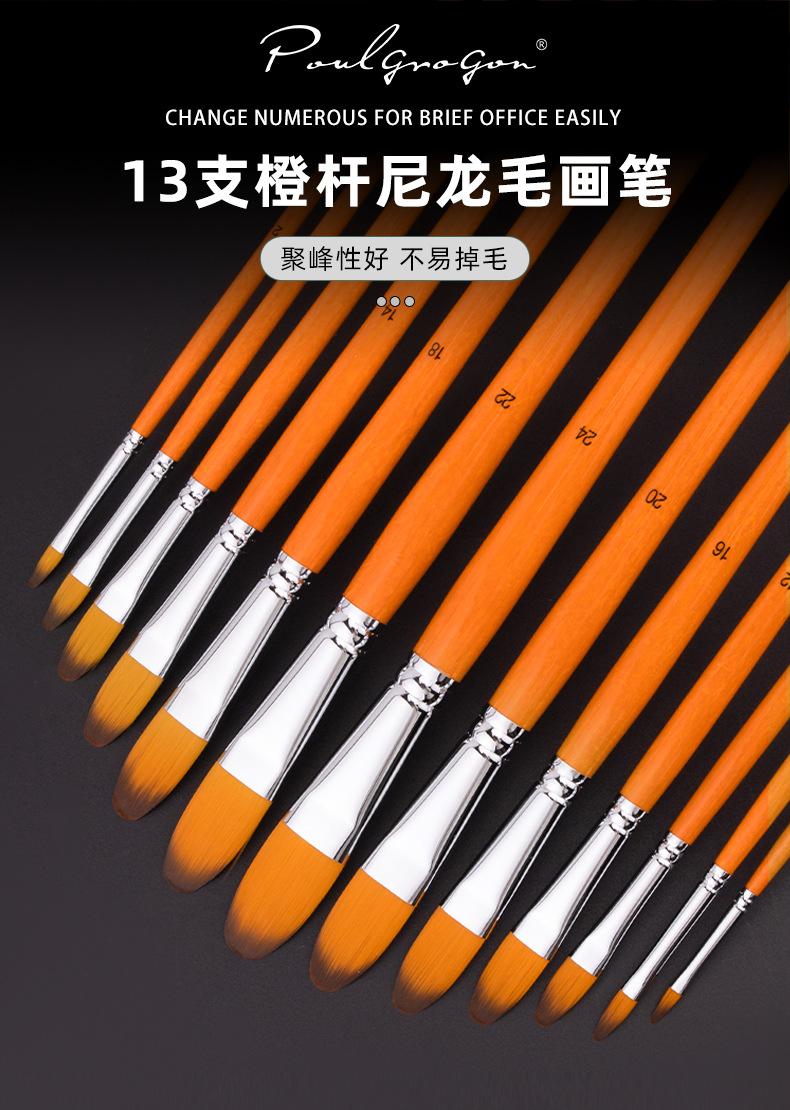Pincel grande de nailon de color naranja claro para pintura artística, acrílico, uñas, redondo, acuarela, óleo