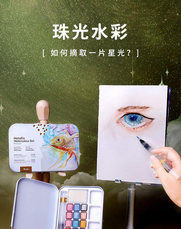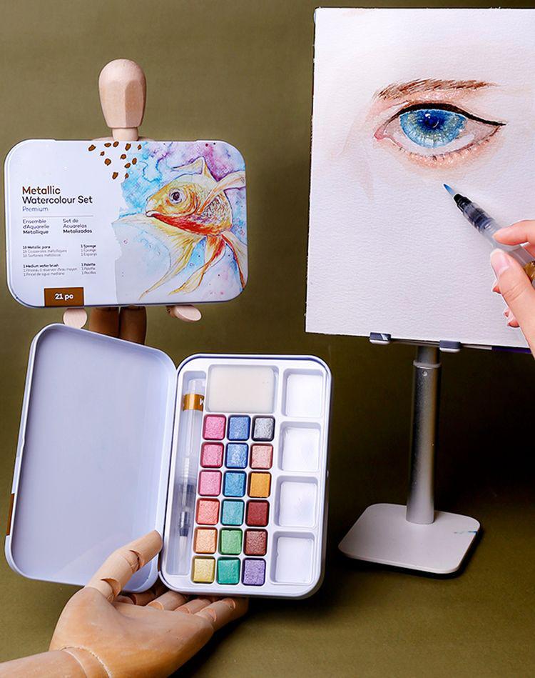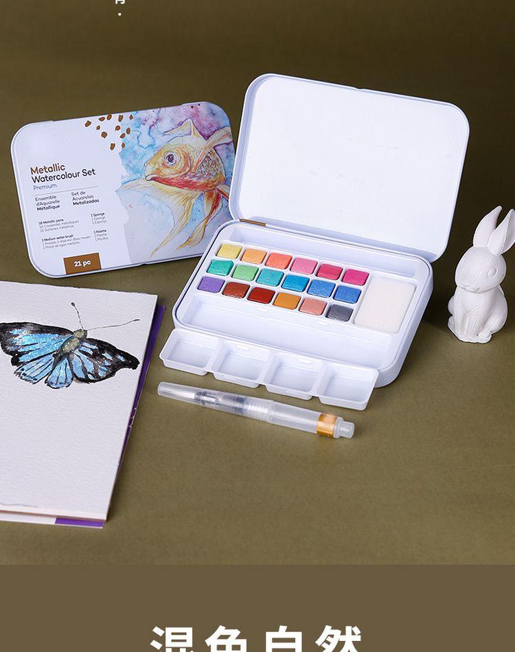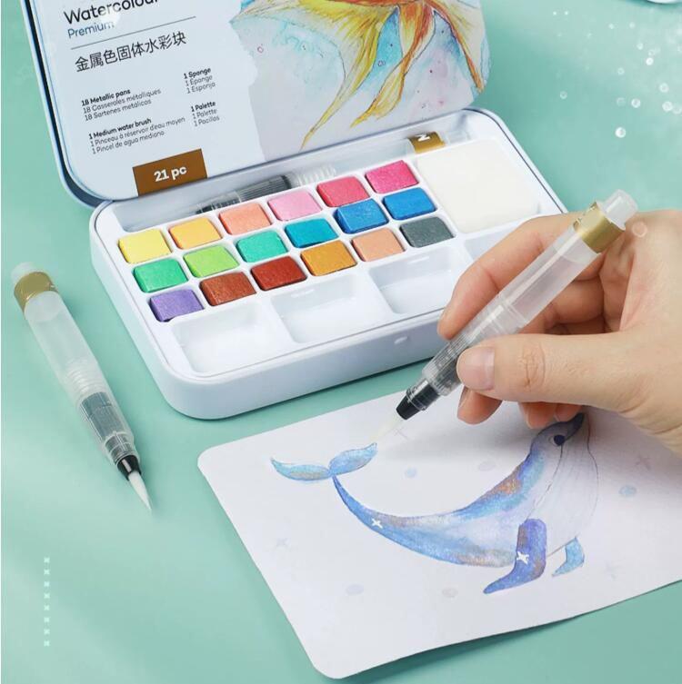 Pintura Artística Pintura Acuarela Sólida 18 Colores para Principiantes Pintado a Mano Metal Nacarado Transparente Pintura Acuarela Set de 21 Piezas