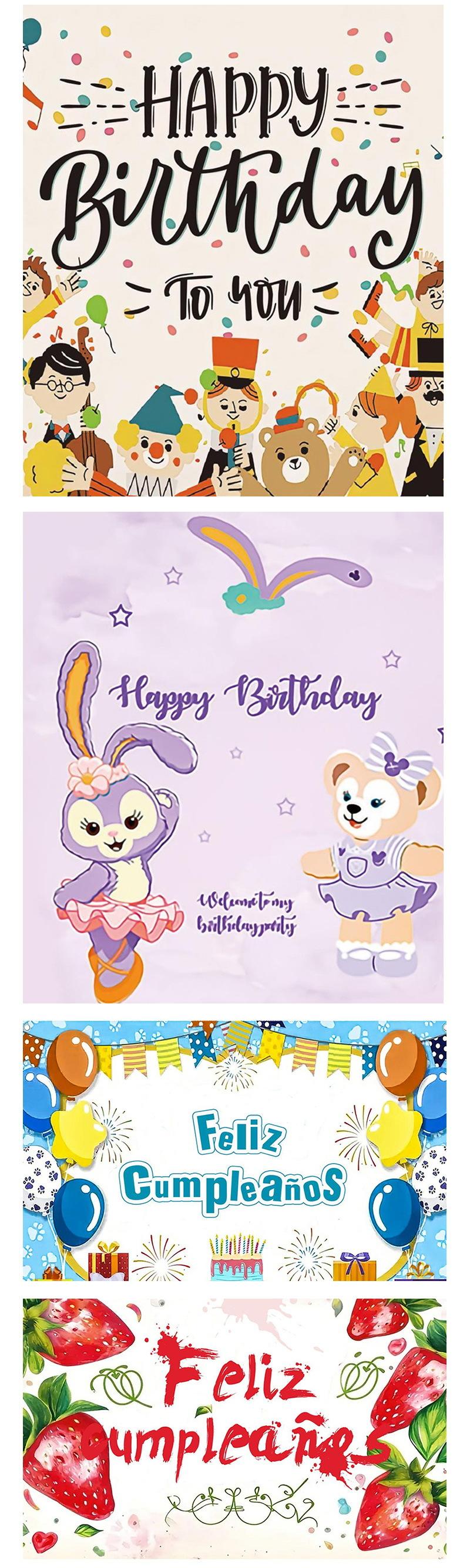 Telón de Fondo de Cumpleaños de Amazon Español Inglés Cumpleaños Material de Tela Real Diseño y Producción de Telón de Fondo de Banner con Impresión Digital