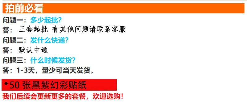 Horario de entrega: Entrega unificada a las 16:00 todos los días. Los pedidos realizados después de las 16:00 se enviarán al día siguiente. Por favor, contacte con el personal de atención al cliente para conocer el horario de entrega de las pegatinas personalizadas.