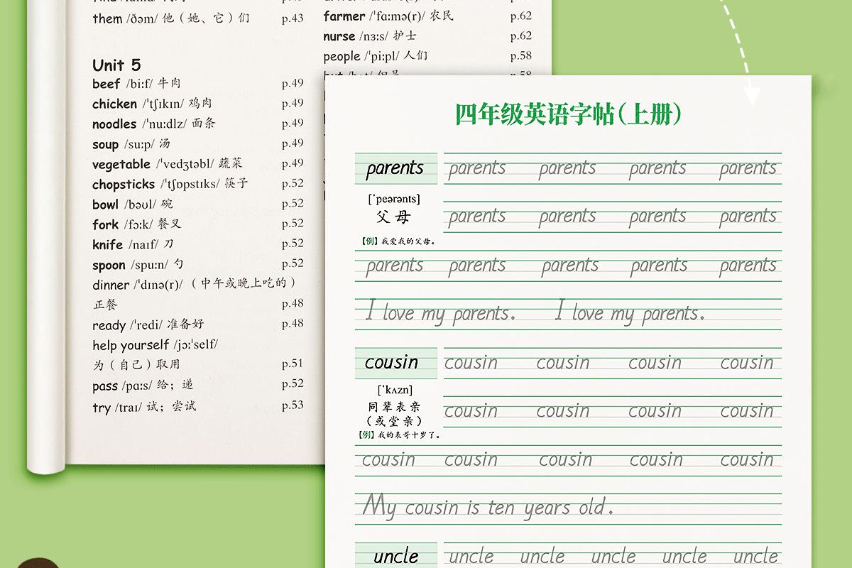 English volume 1 for fourth grade (1 set/24 pages in total), English volume 2 for fourth grade (1 set/28 pages...