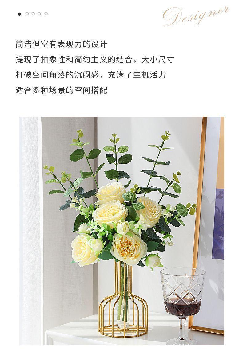 Champagne 5-head peony + 2 eucalyptus + golden vase_standard, Light pink 5 peonies + 2 eucalyptus + golden vas...