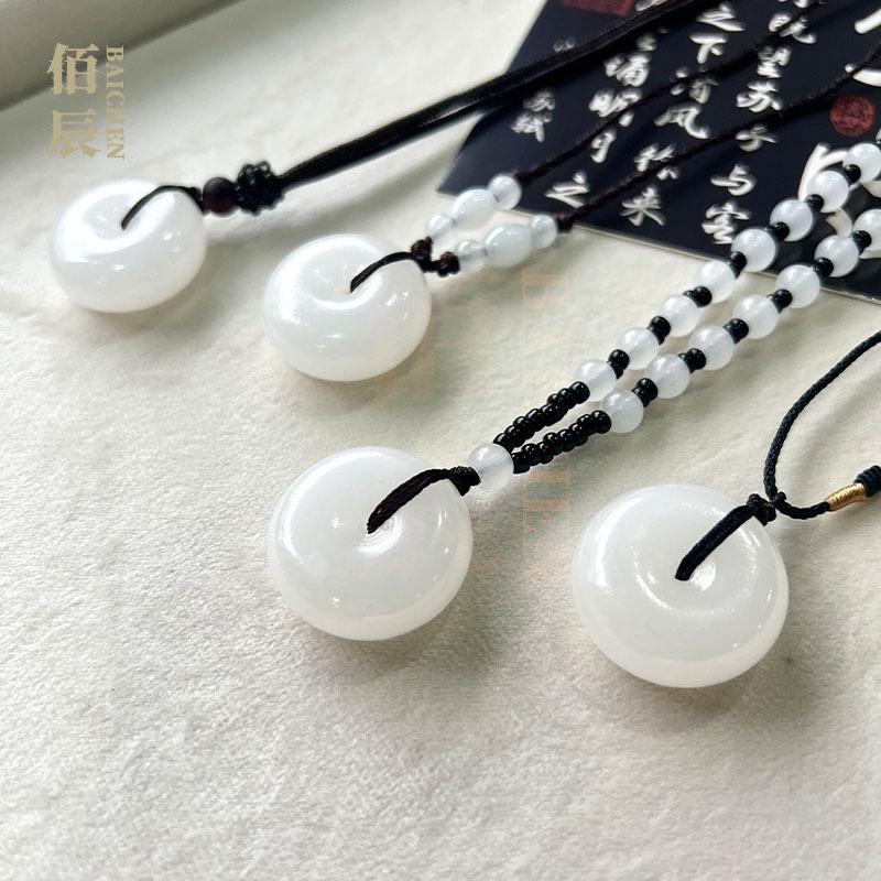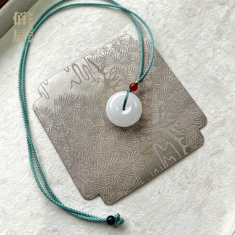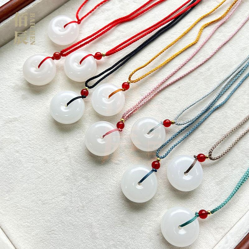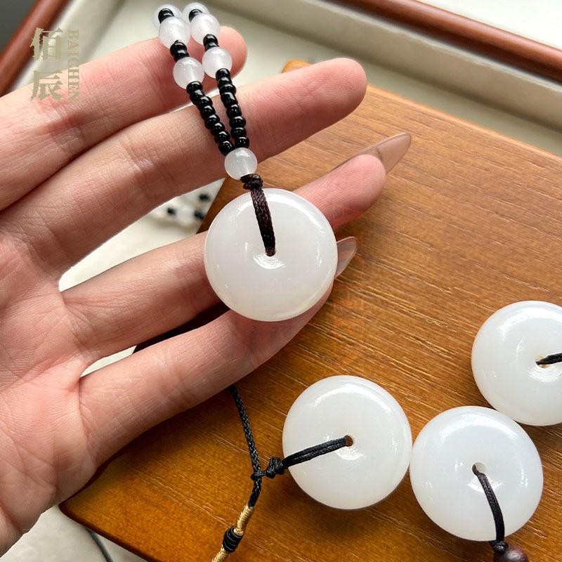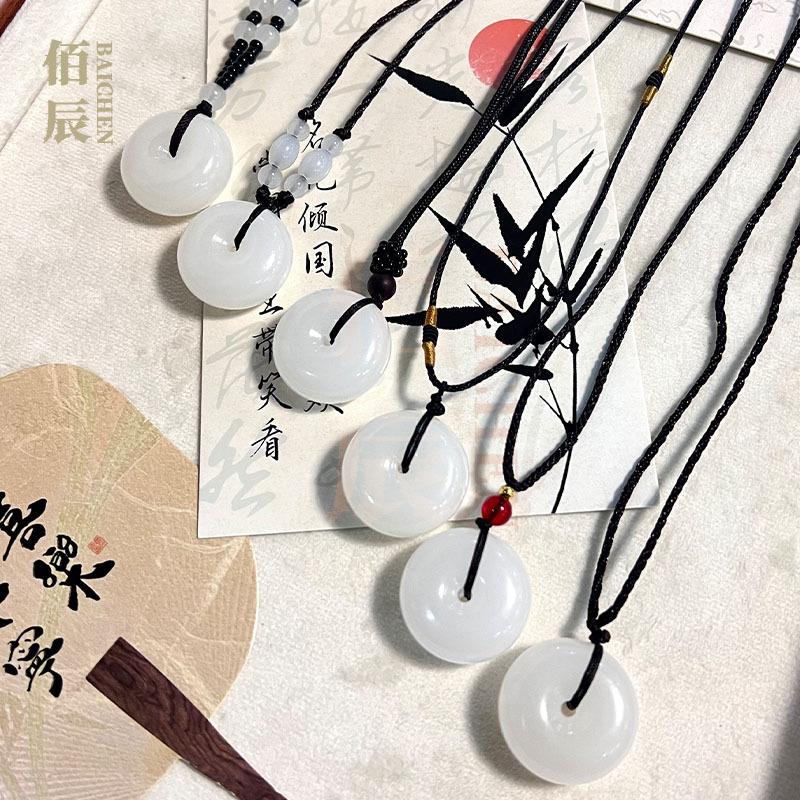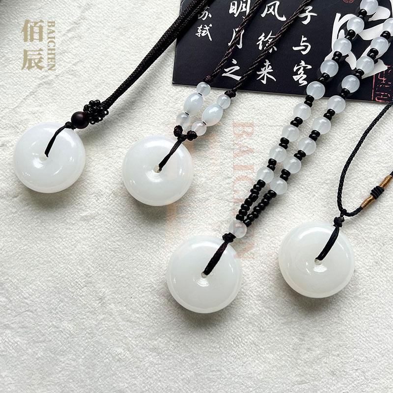 Collar con colgante de jade afgano natural con hebilla de ping-an, hebilla de jade blanco de oveja con cuerda, regalo de jade para el bienestar de la vida, venta al por mayor