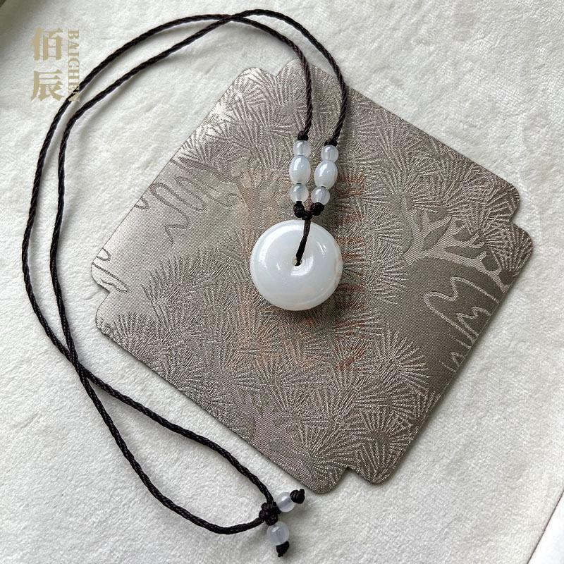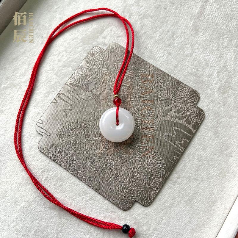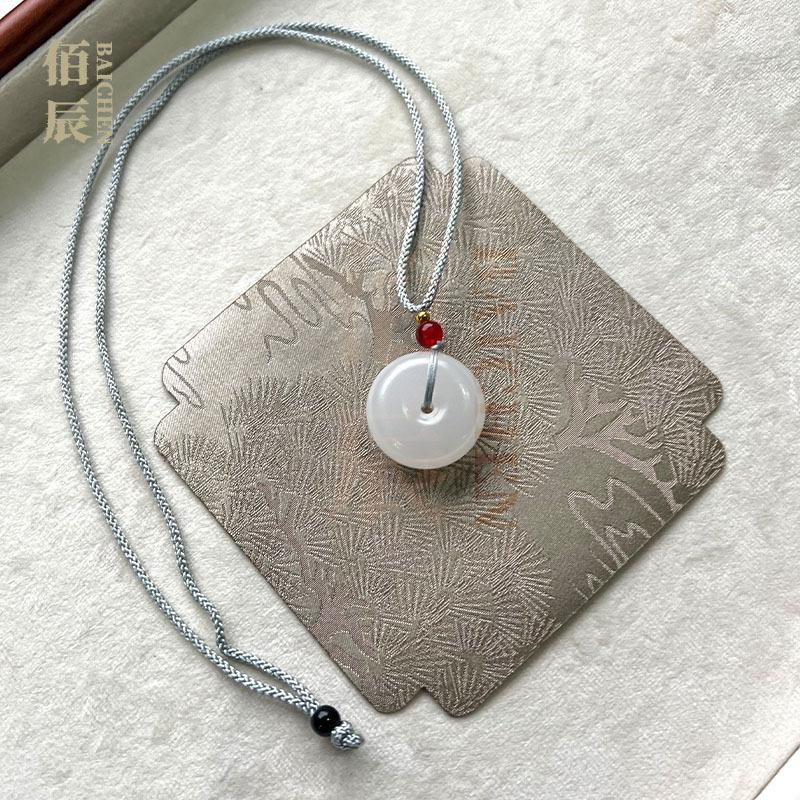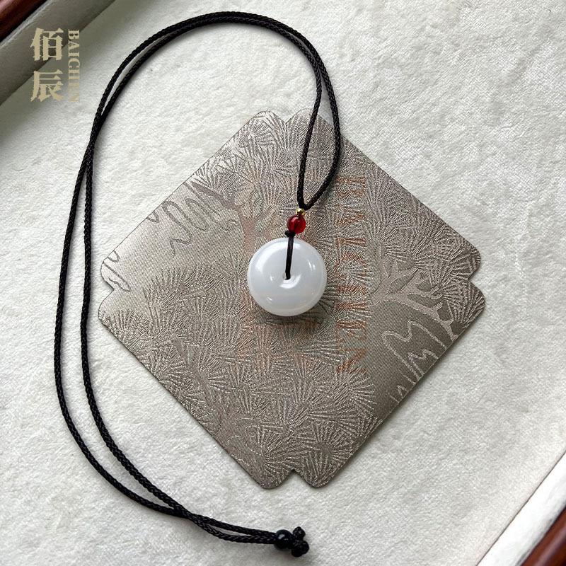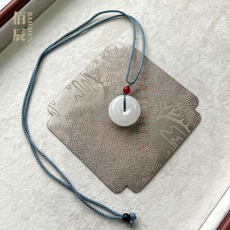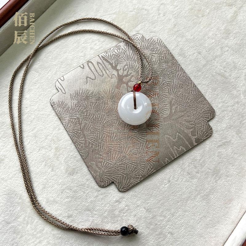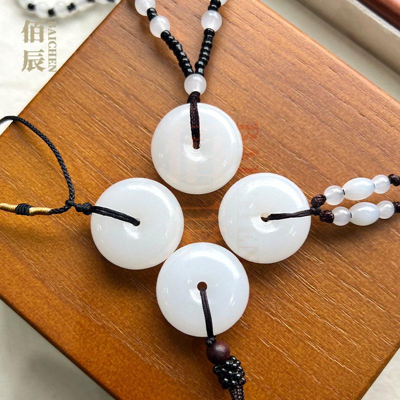 Collar con colgante de jade afgano natural con hebilla de ping-an, hebilla de jade blanco de oveja con cuerda, regalo de jade para el bienestar de la vida, venta al por mayor