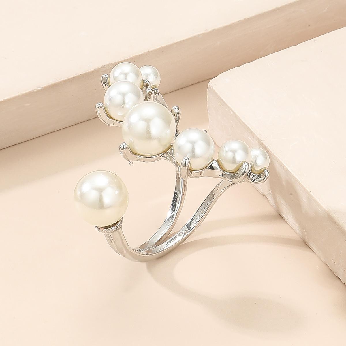 Anillo de unión de lujo ligero, diseño creativo de nicho retro francés, estilo coreano, simple y elegante, anillo abierto de perla