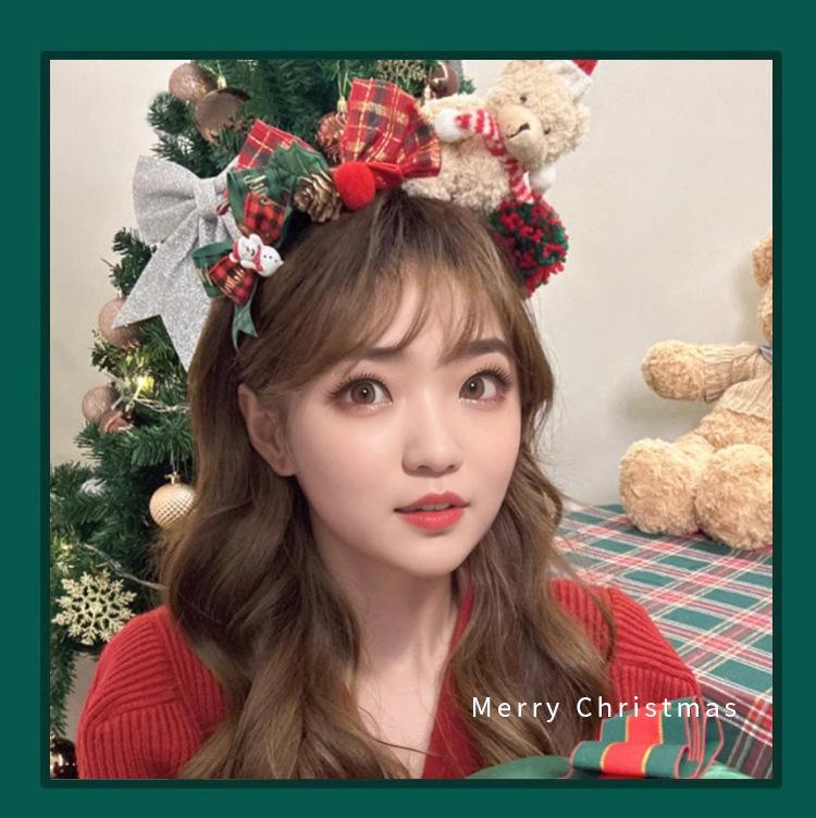 Gorro navideño para niños, gorro navideño, aro para el pelo, oso Mori, tarjeta para el pelo, accesorios para actuaciones, diadema para fotos, accesorios para el cabello