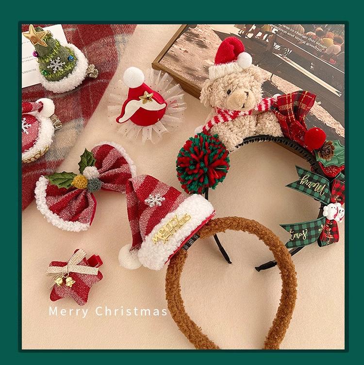1 # Christmas hat headband, 1#Bear christmas headband, 1#English red hat hairpin, 8#Snowflake hat hairpin, 1#S...
