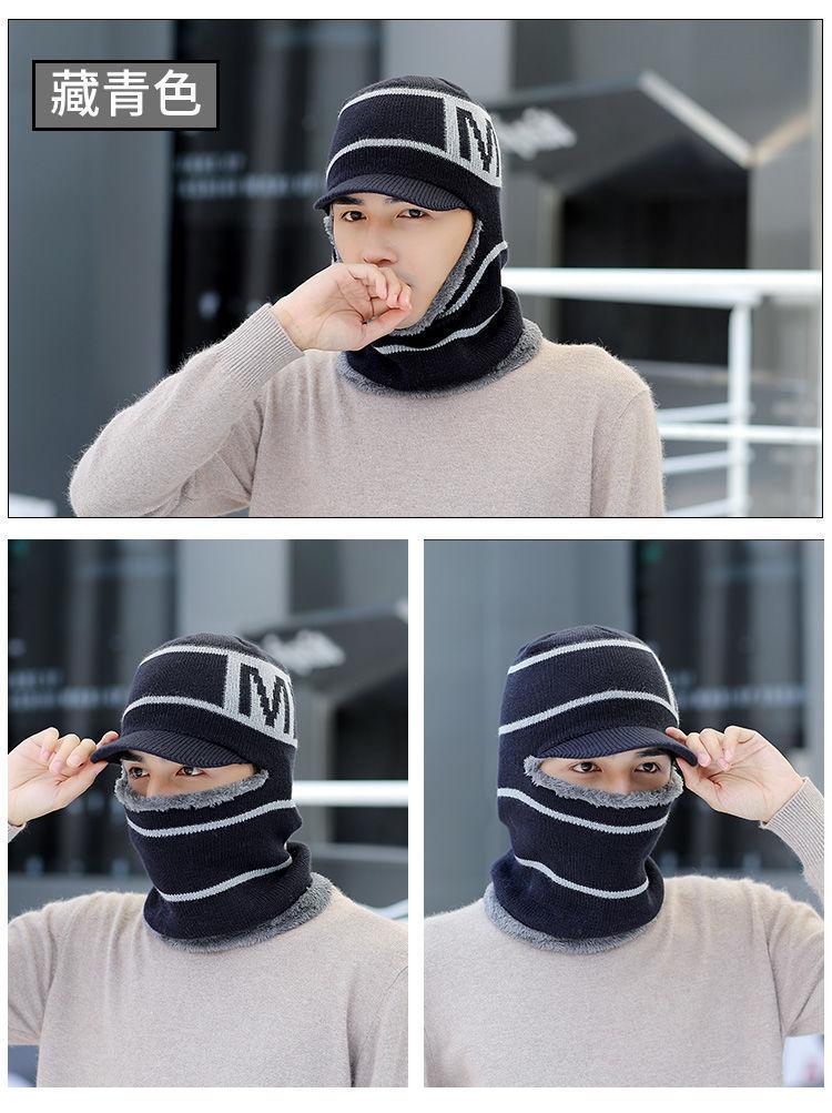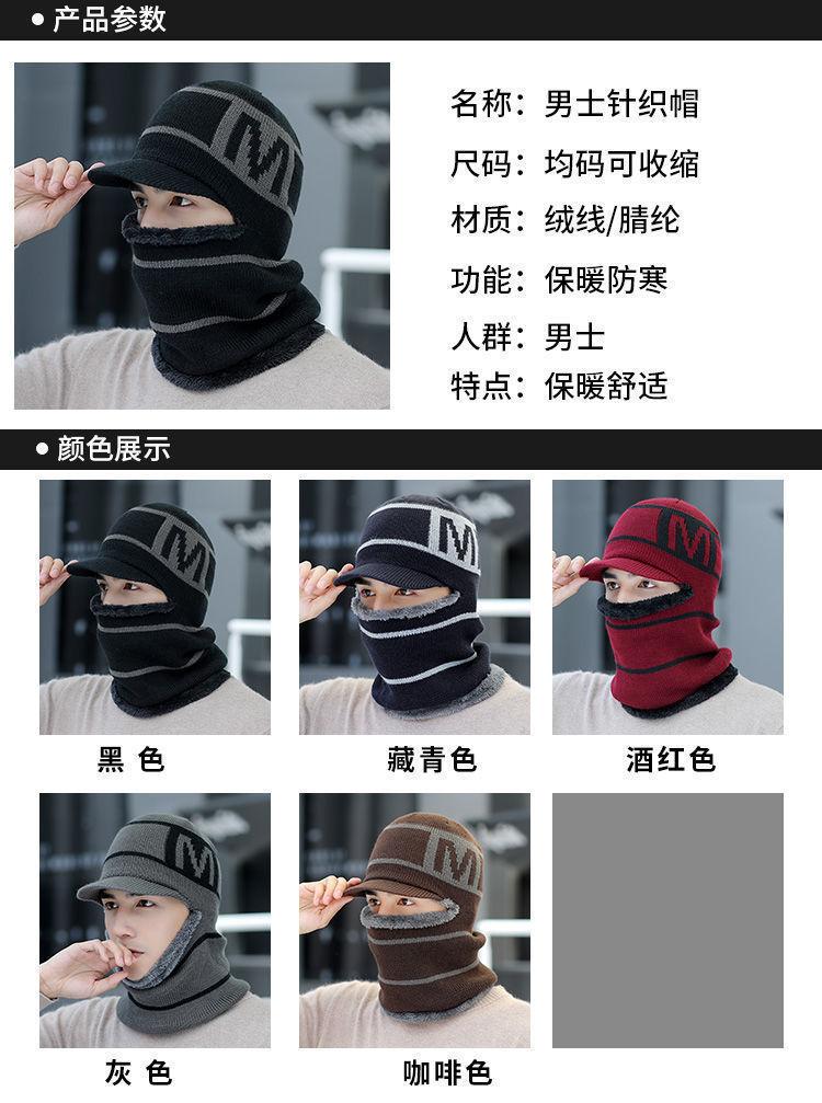 Gorro de hombre otoño e invierno 2021, nuevo gorro de lana bordado con letras, forro polar, gorro de punto grueso y cálido, gorro de una pieza para hombre