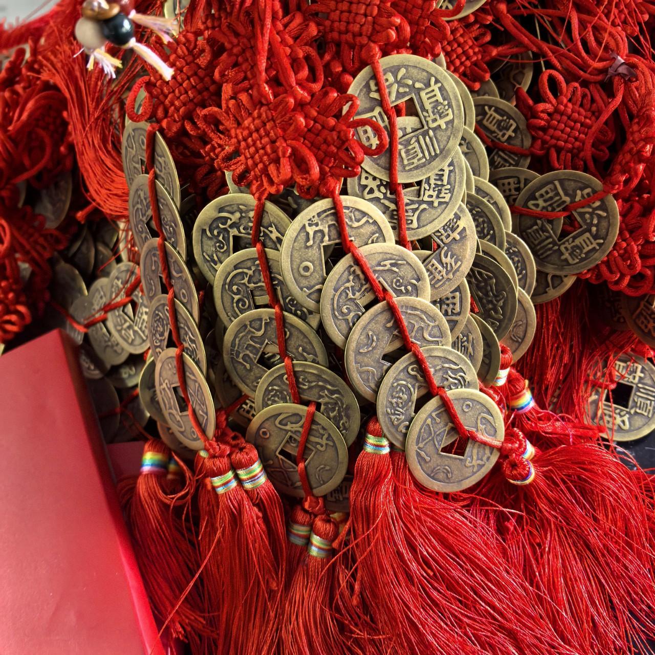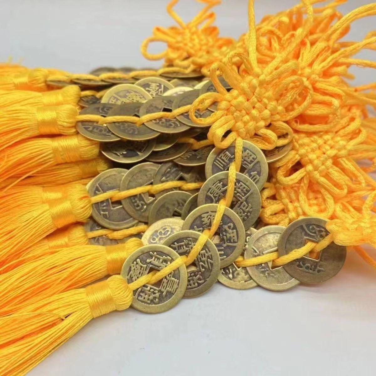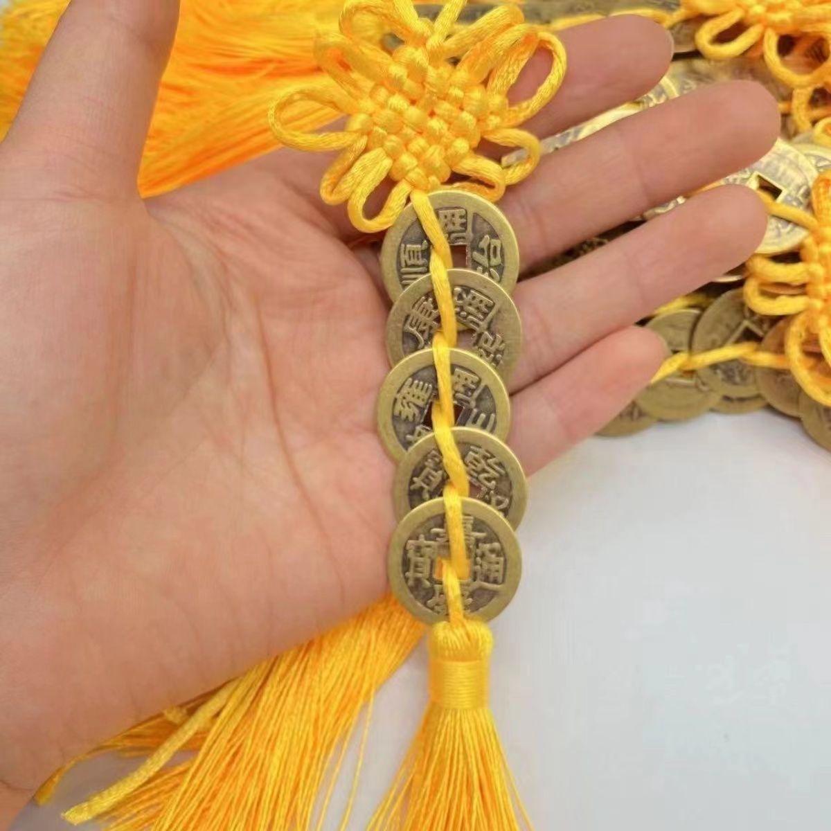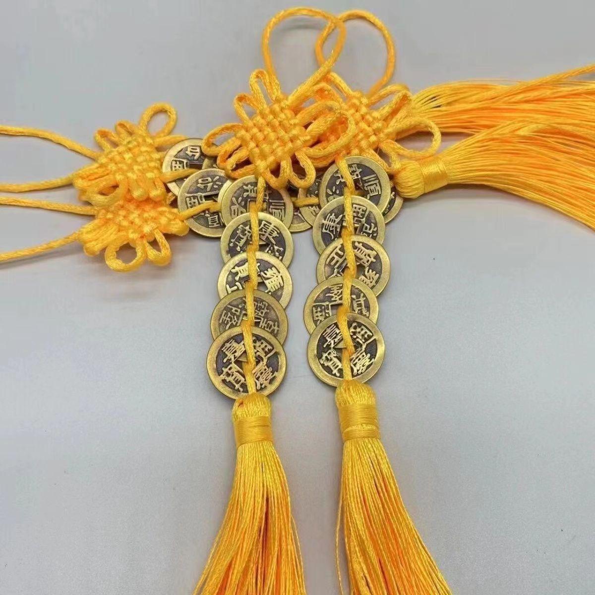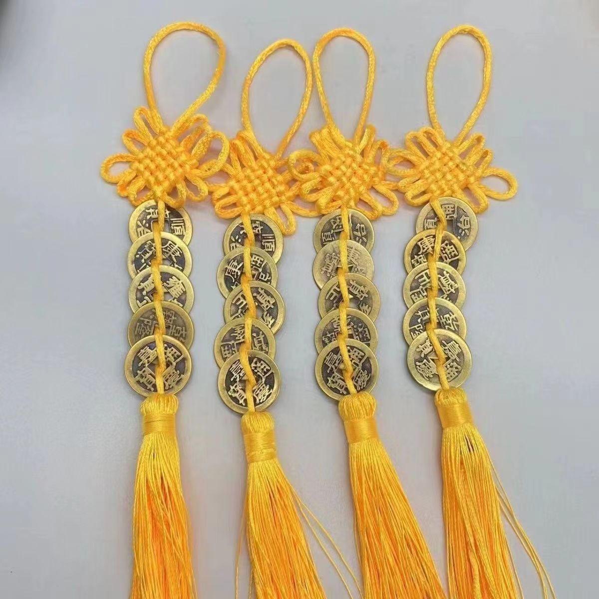 Yellow chinese knot five emperors, Red chinese knot five emperors, Large 5cm five-coin emperor pendant