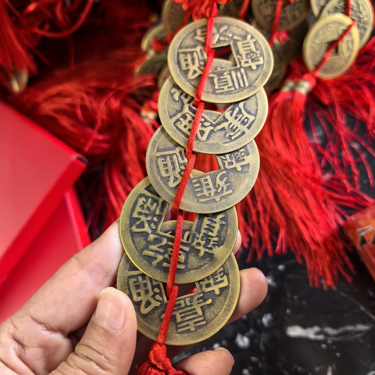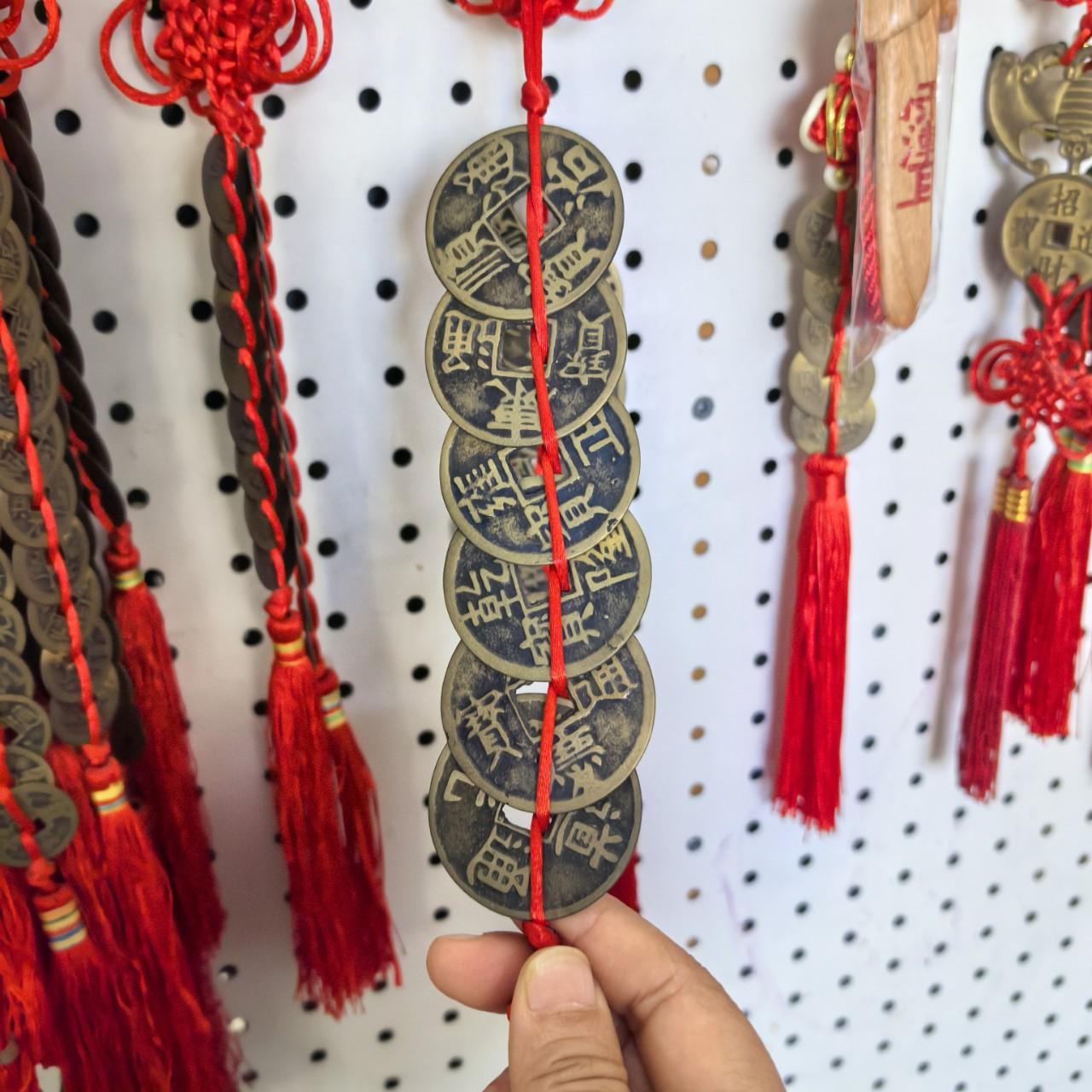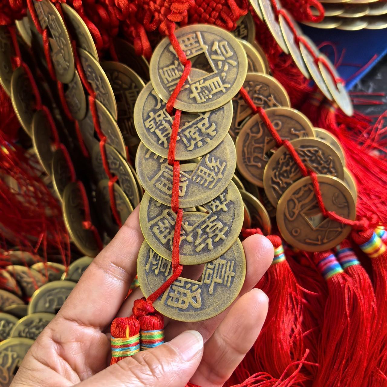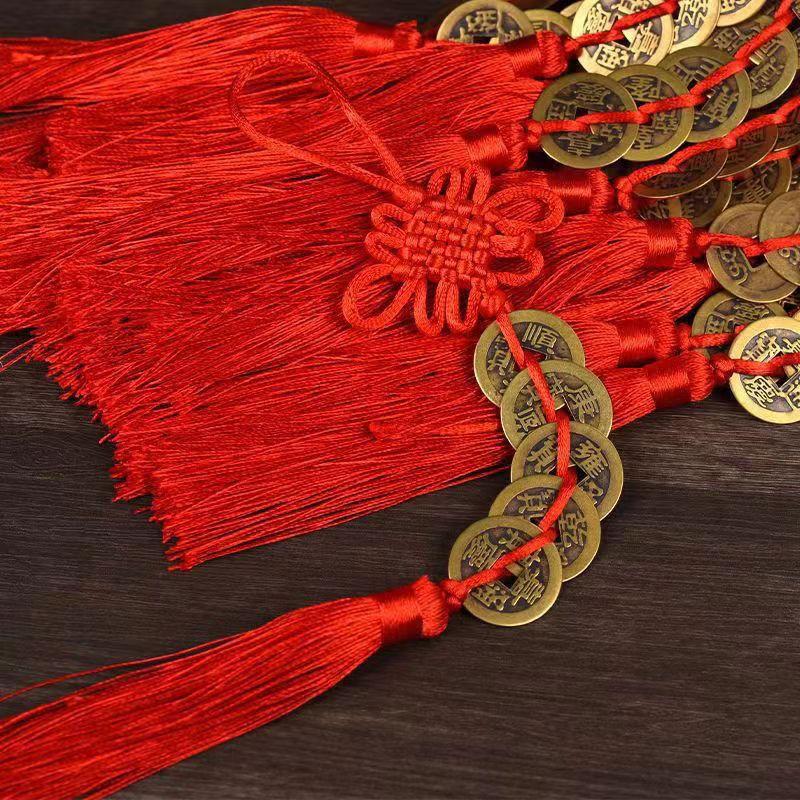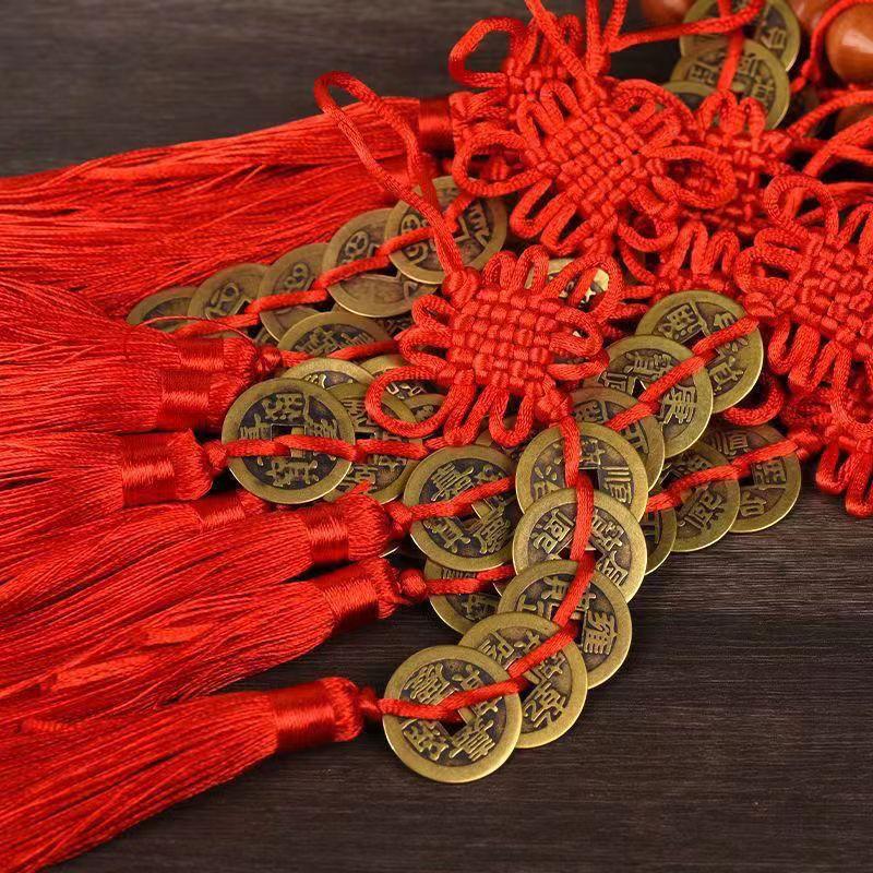 Yellow chinese knot five emperors, Red chinese knot five emperors, Large 5cm five-coin emperor pendant