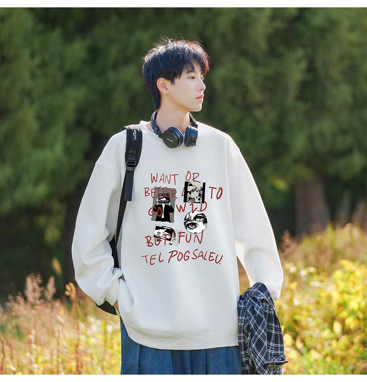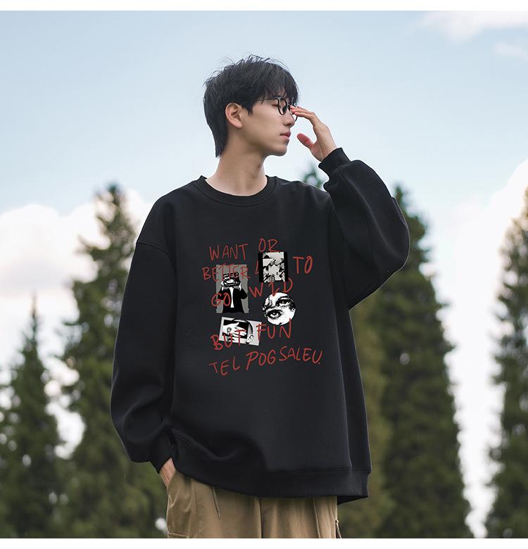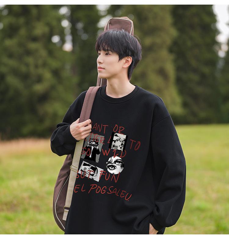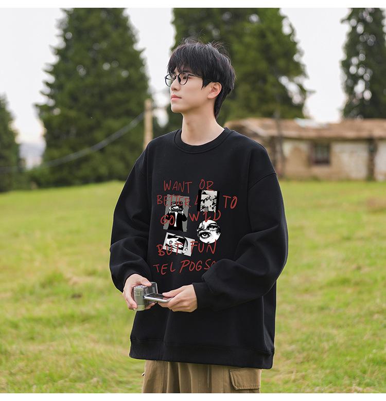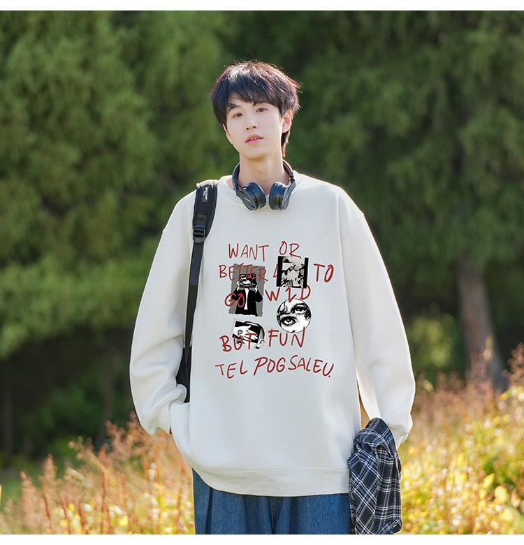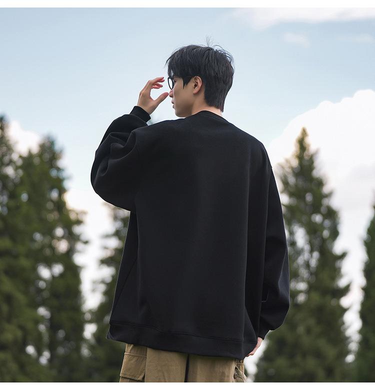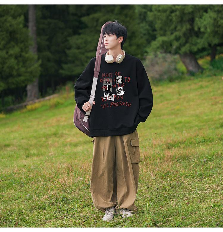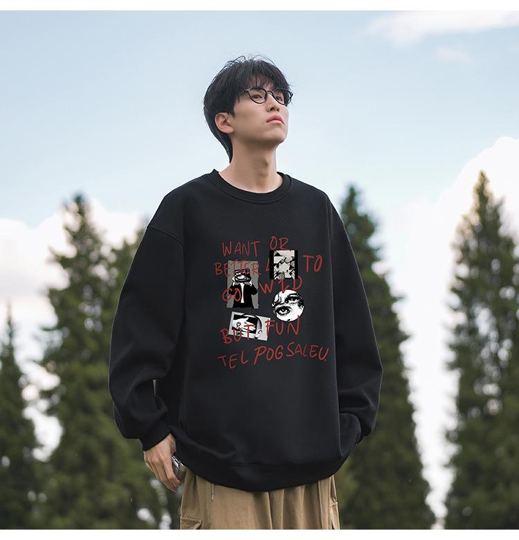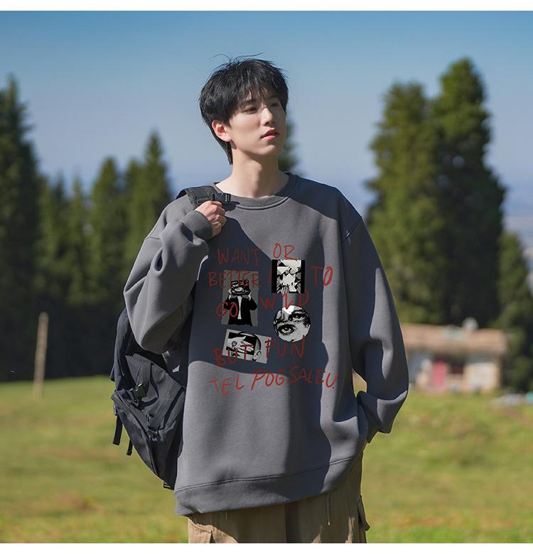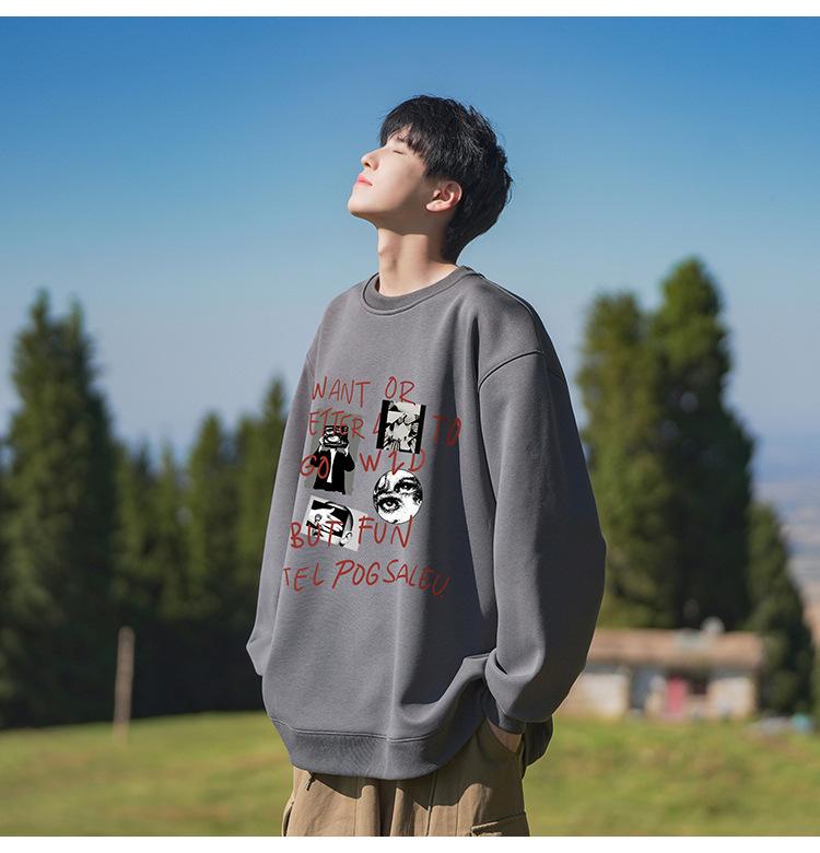 Sudadera para Hombre 2024 Otoño e Invierno Nueva Estilo Japonés Retro Moderna Versátil Estampada Peso Pesado Suelta Casual Chaqueta sin Capucha