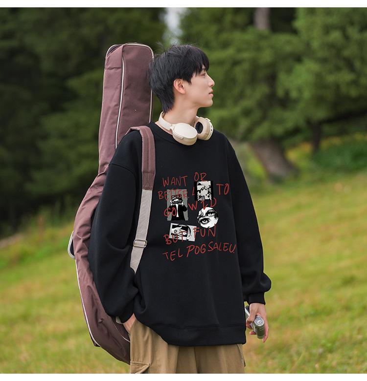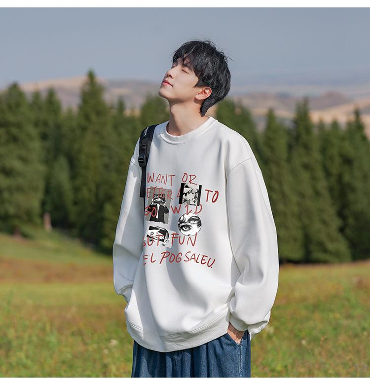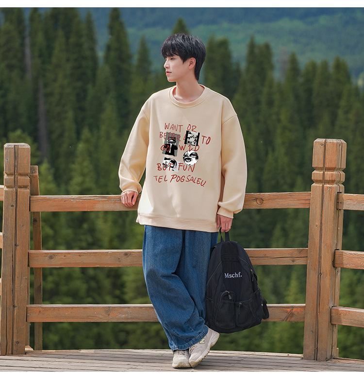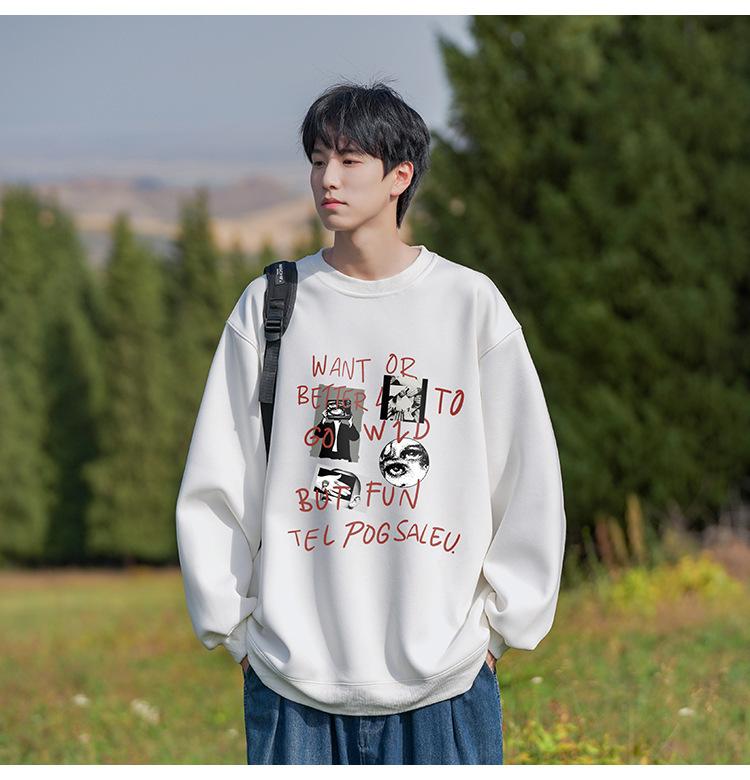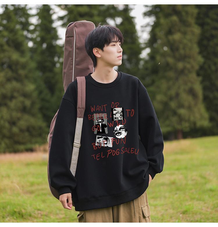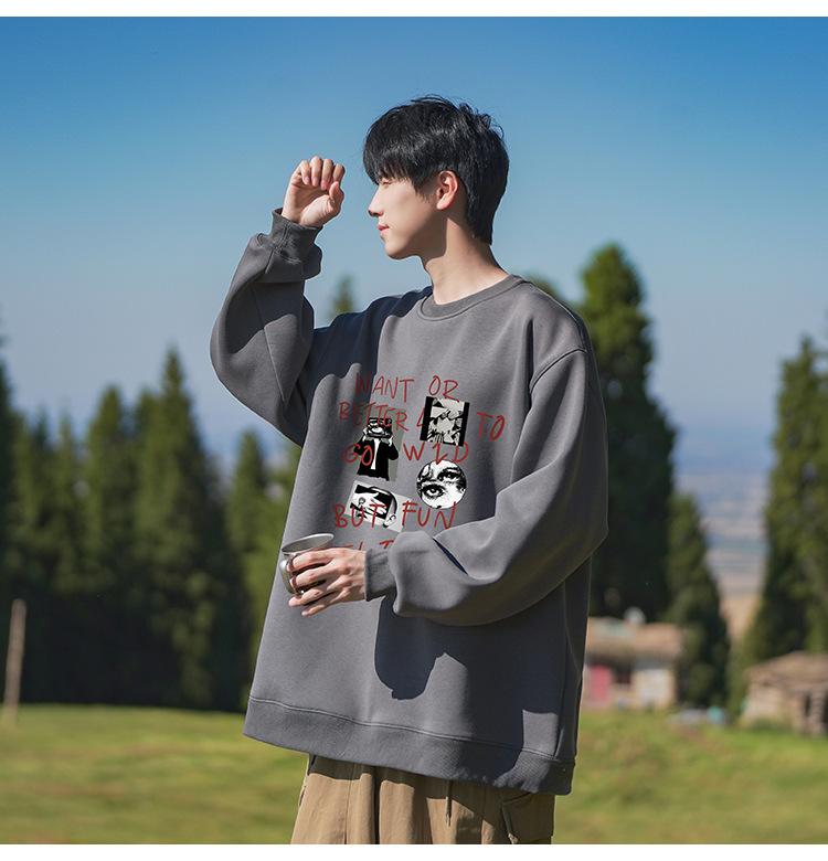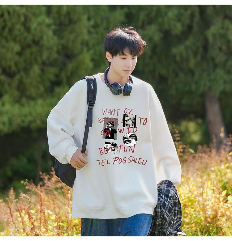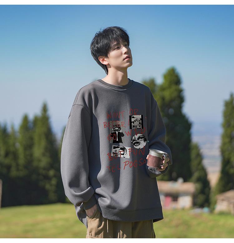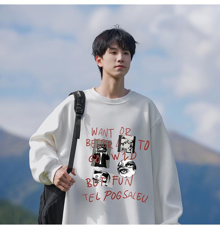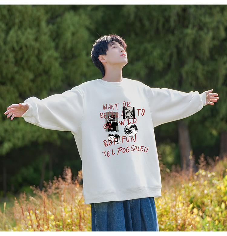 Sudadera para Hombre 2024 Otoño e Invierno Nueva Estilo Japonés Retro Moderna Versátil Estampada Peso Pesado Suelta Casual Chaqueta sin Capucha