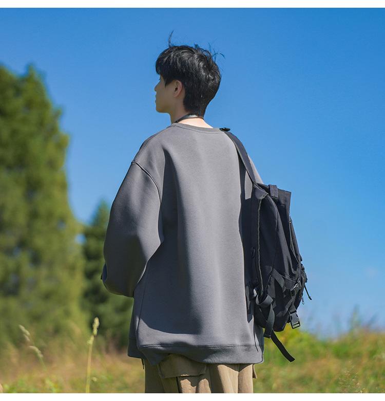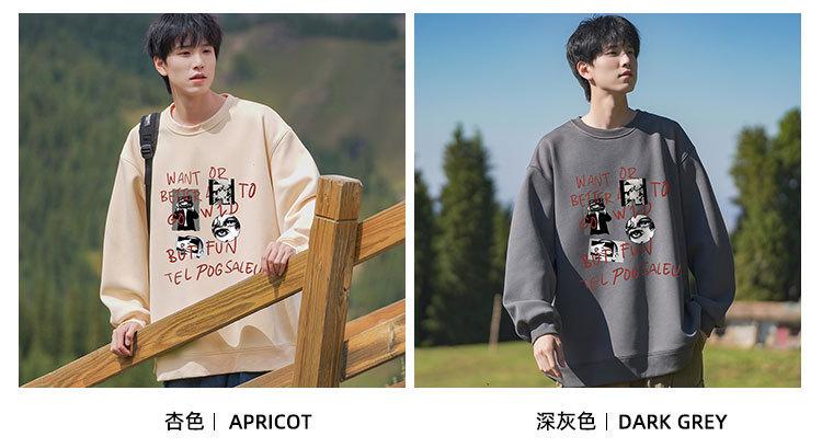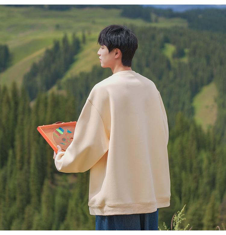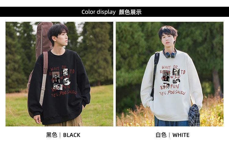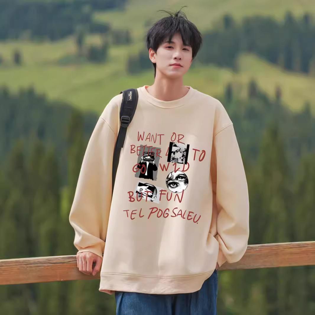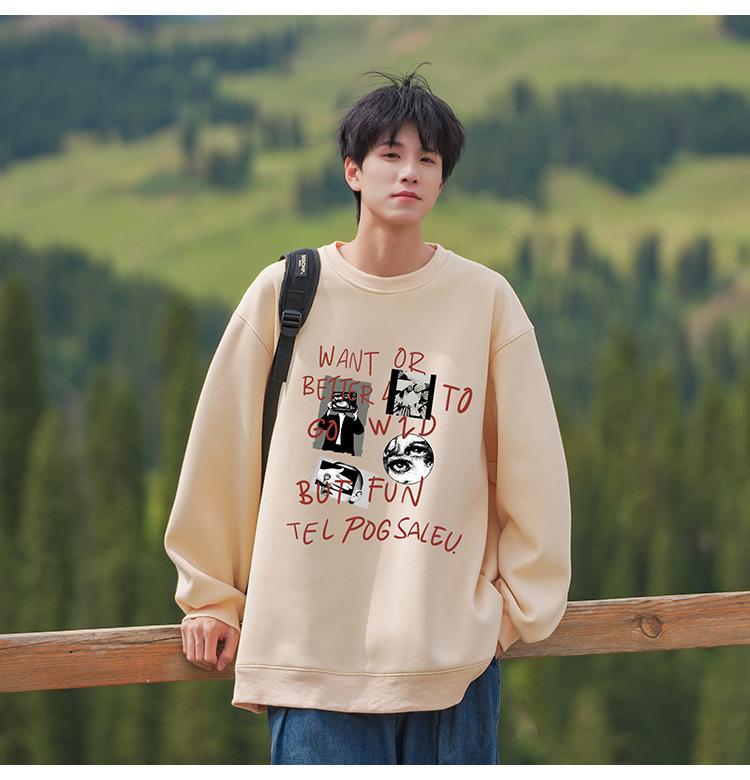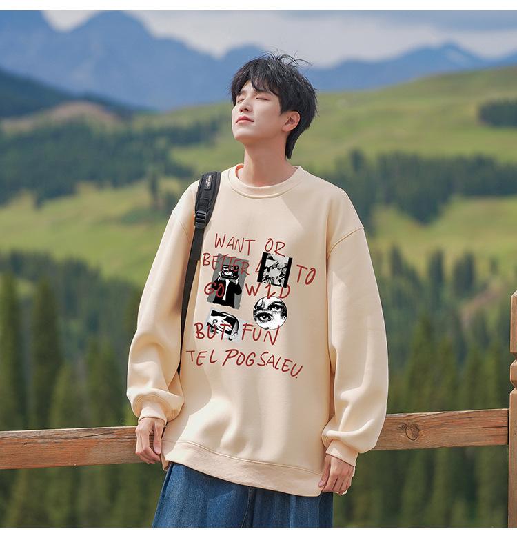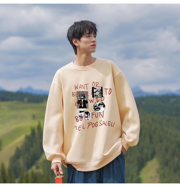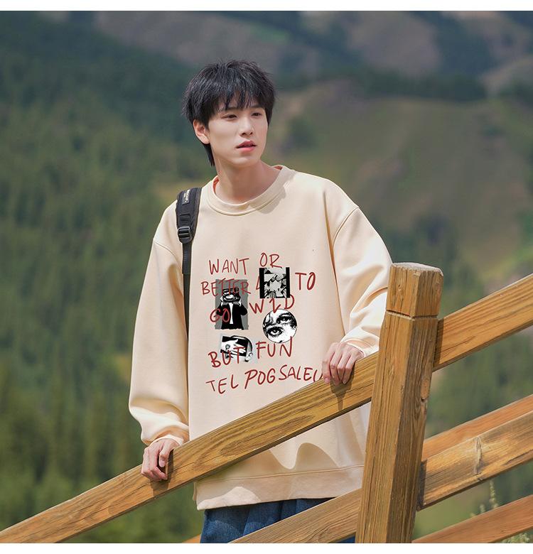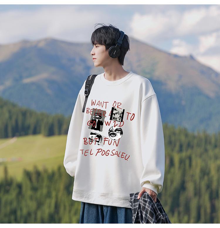 Sudadera para Hombre 2024 Otoño e Invierno Nueva Estilo Japonés Retro Moderna Versátil Estampada Peso Pesado Suelta Casual Chaqueta sin Capucha