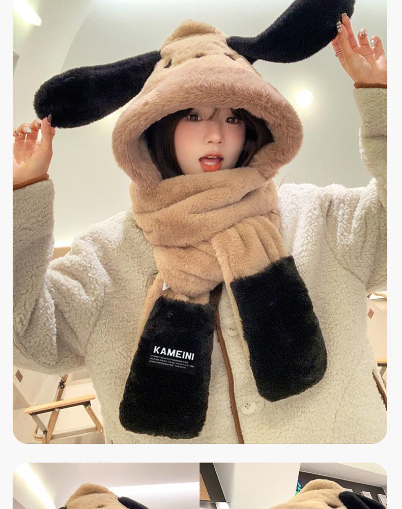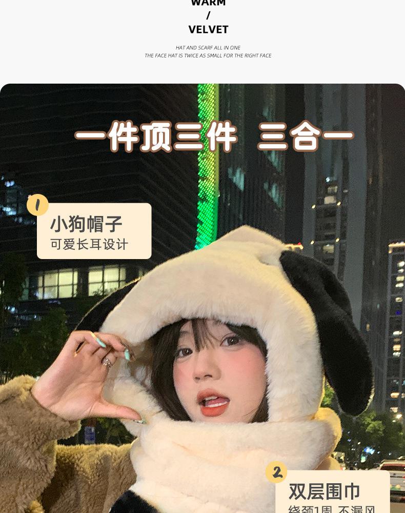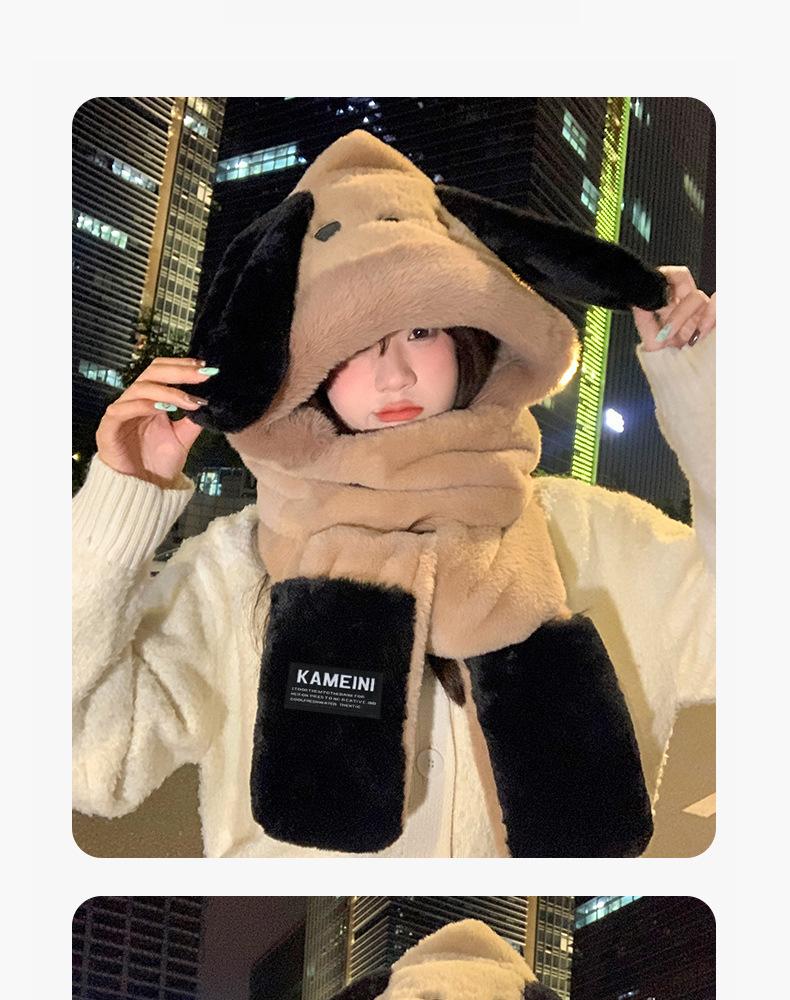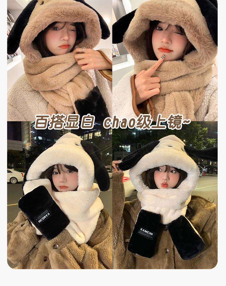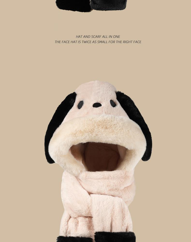 Pacha Perro Lindo Sombrero de Peluche Bufanda Guantes Sombrero Todo en Uno para Mujer Invierno Dibujos Animados Cálido Ciclismo Engrosado Protección para las Orejas Sombrero