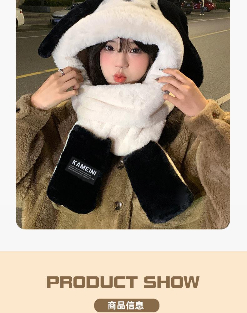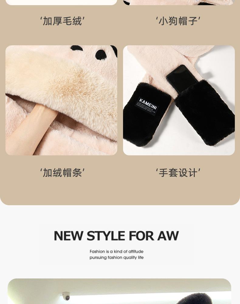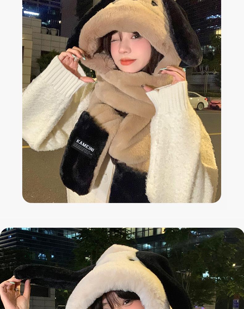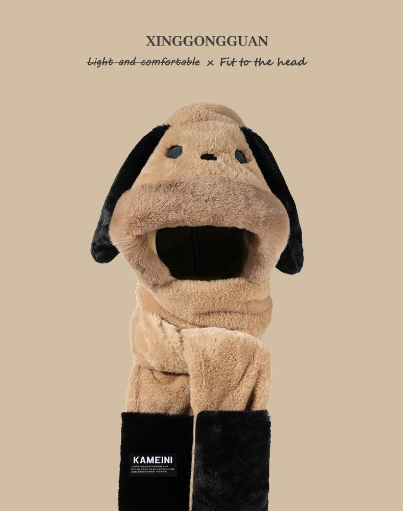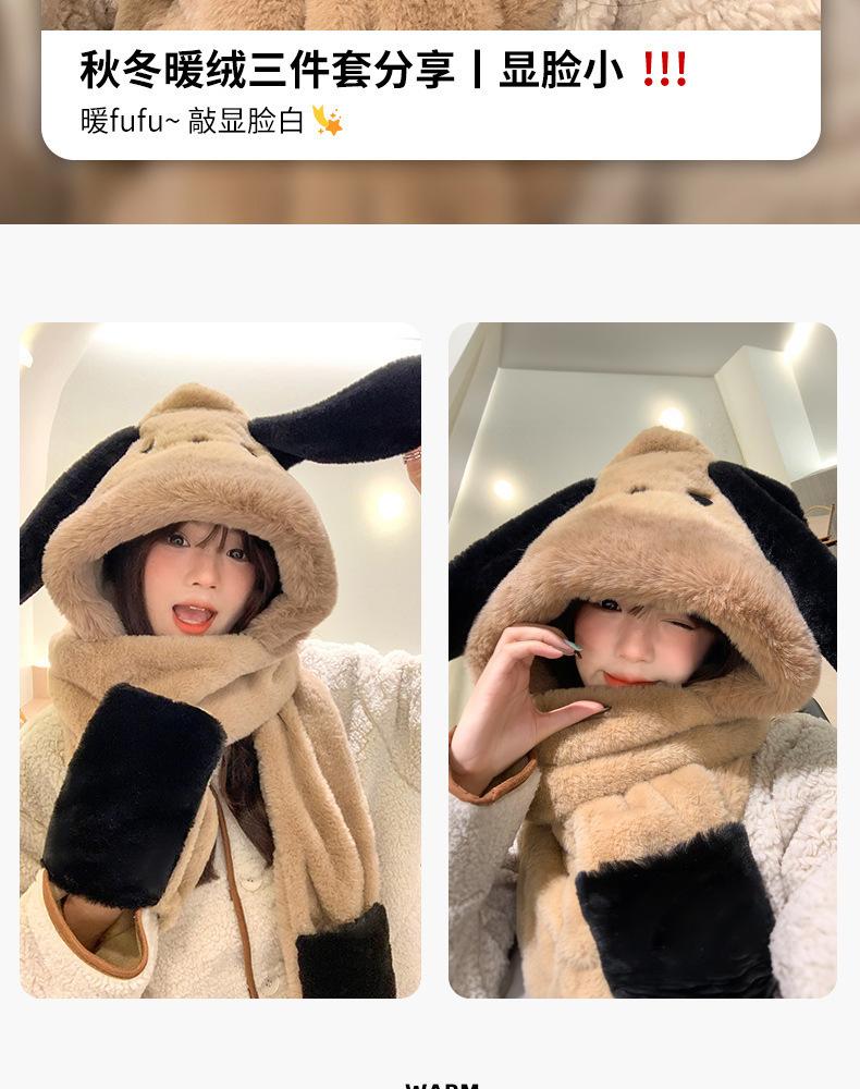 Pacha Perro Lindo Sombrero de Peluche Bufanda Guantes Sombrero Todo en Uno para Mujer Invierno Dibujos Animados Cálido Ciclismo Engrosado Protección para las Orejas Sombrero