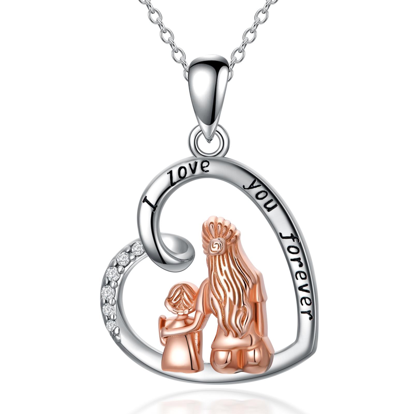 Collar con forma de corazón para el Día de la Madre, superventas en Amazon, regalo para el Día de San Valentín, cadena de clavícula de moda galvanizada de dos colores.