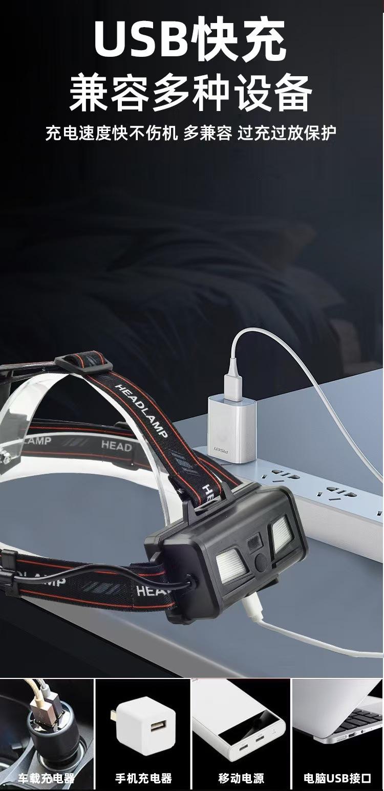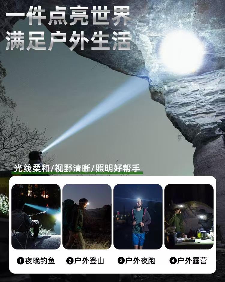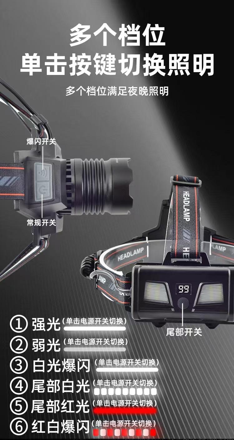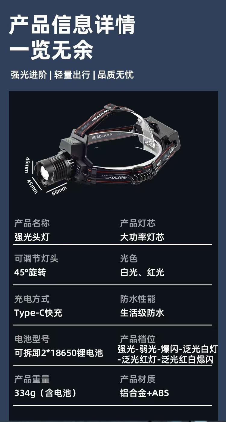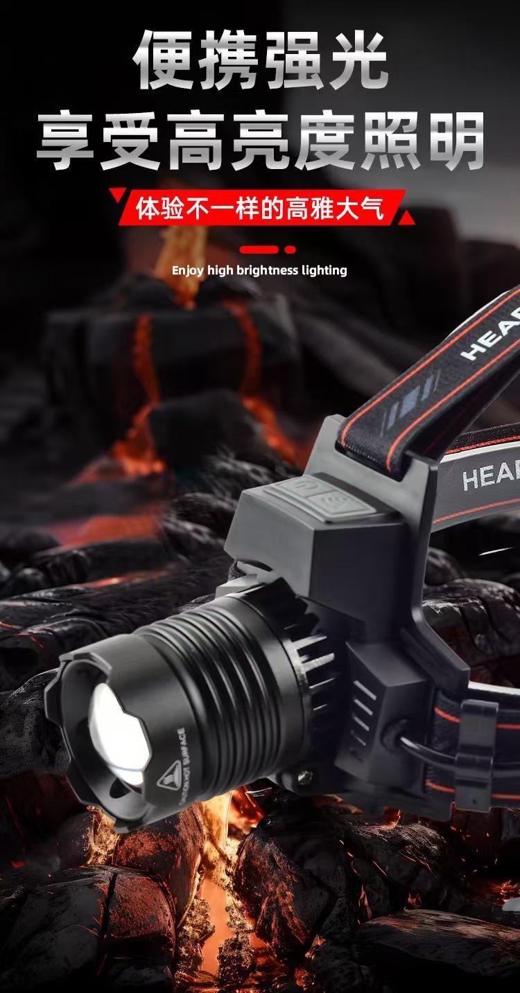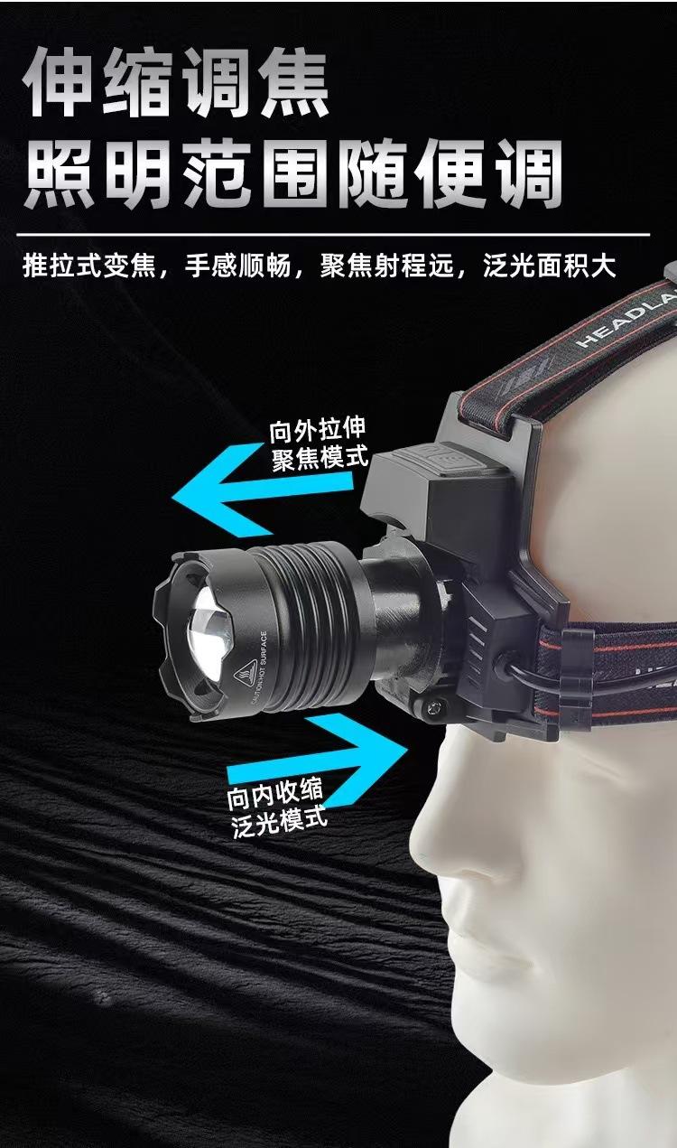 Faro de luz fuerte zoom mecánico larga duración de batería carga USB alta potencia hogar exterior mar largo alcance lámpara de cabeza