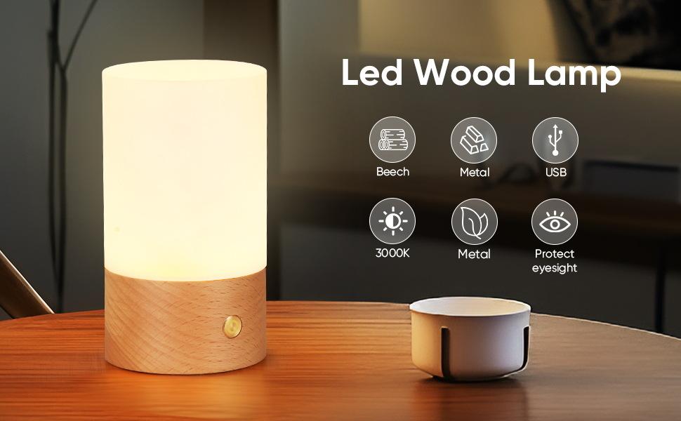 Luz Nocturna LED de Madera Maciza Inteligente Transfronteriza de Amazon Regalo Creativo Lámpara de Mesa USB Japonesa Regalo