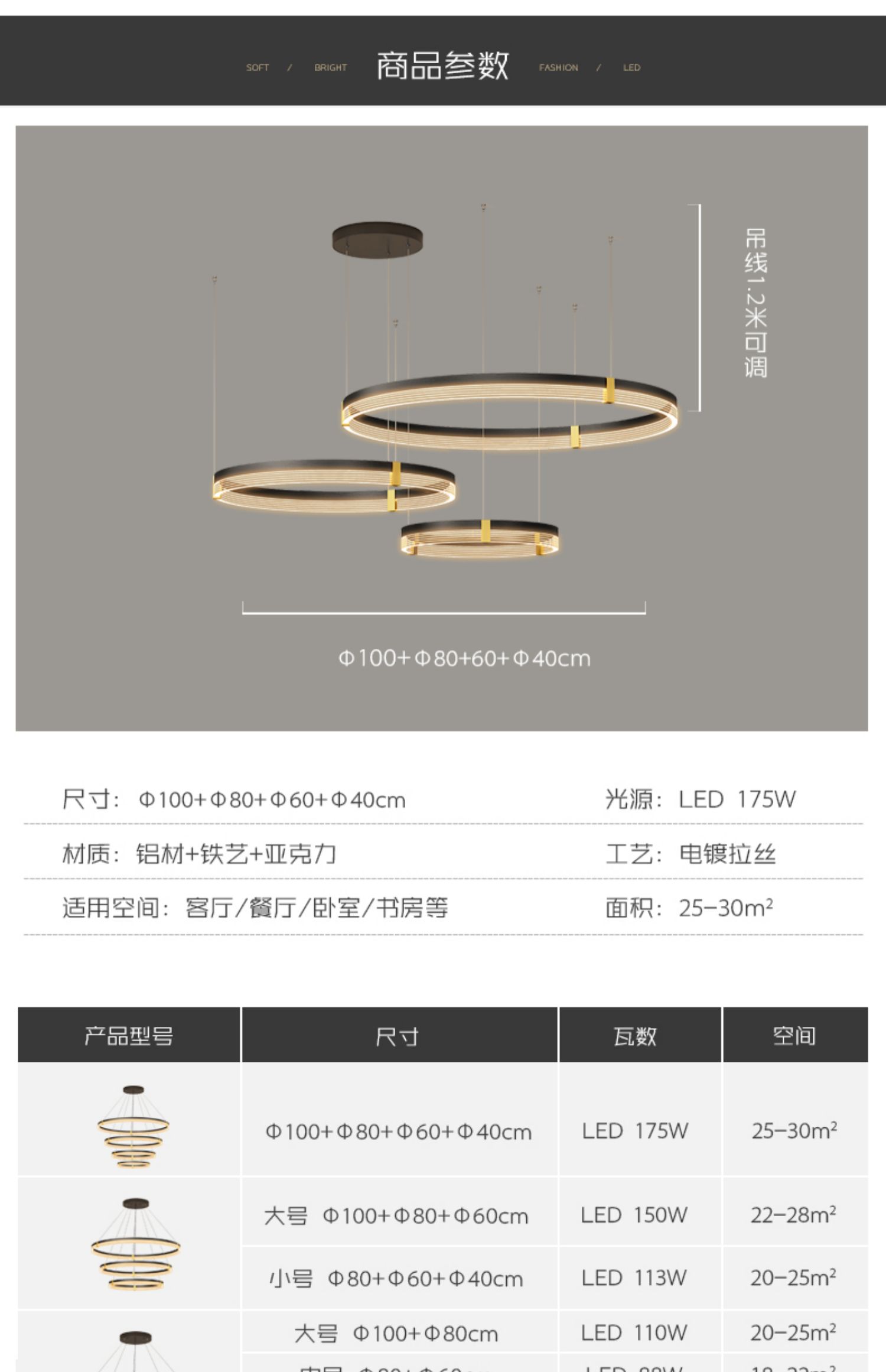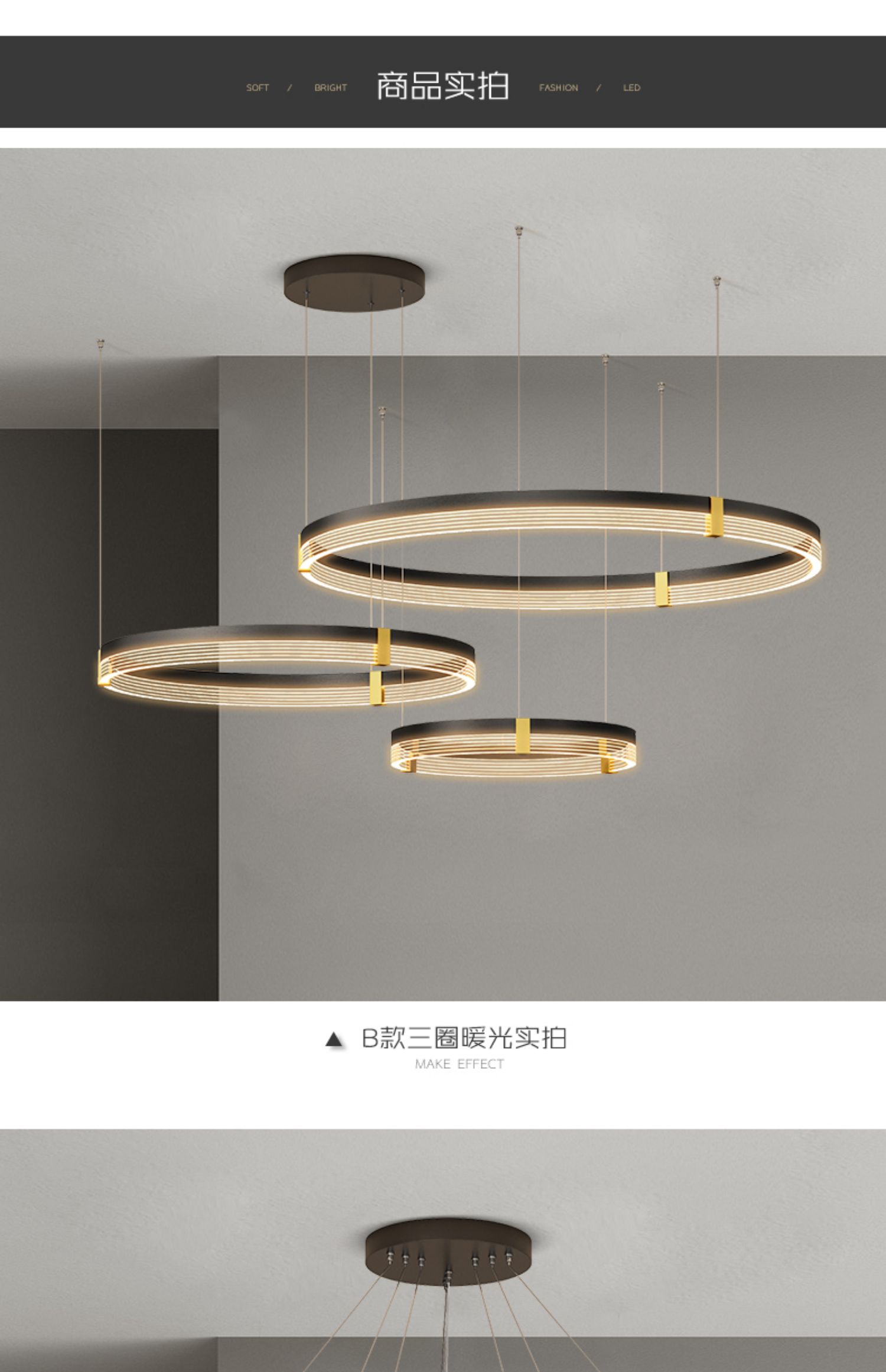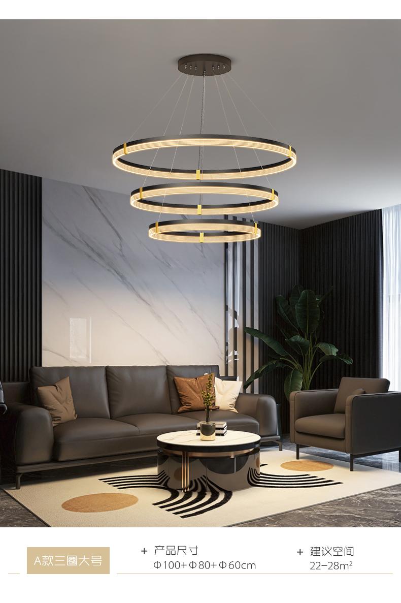 Lámpara de Araña para Sala de Estar Moderna Simple Lujo Ligero Anillo Redondo Ambiente Italiano Principal 2024 Nuevo Lámpara para Restaurante Dormitorio