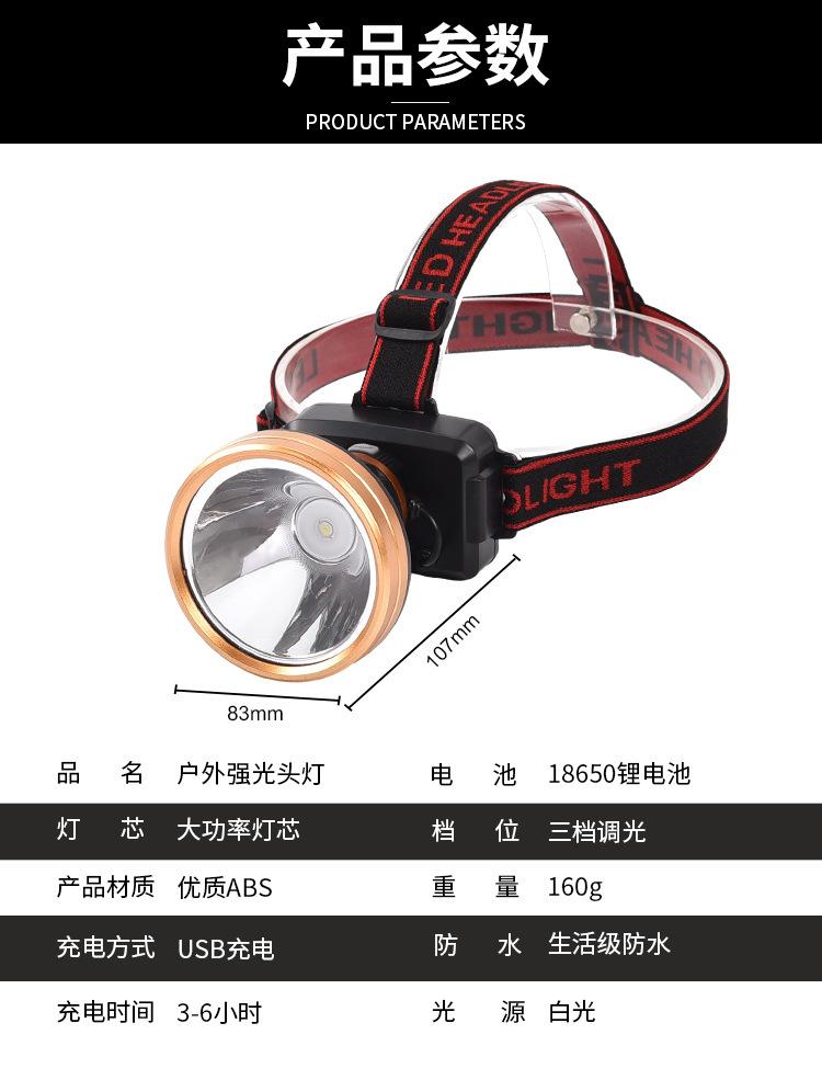 Nueva patrulla transfronteriza de larga duración luz de aluminio Copa luz fuerte linterna frontal Montañismo al aire libre Camping faro recargable