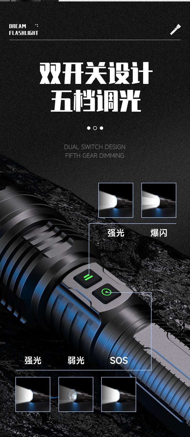 Linterna Láser Blanca Luz Fuerte Carga Exterior Super Brillante Portátil Larga Duración Largo Alcance Emergencia Impermeable Linterna Doméstica