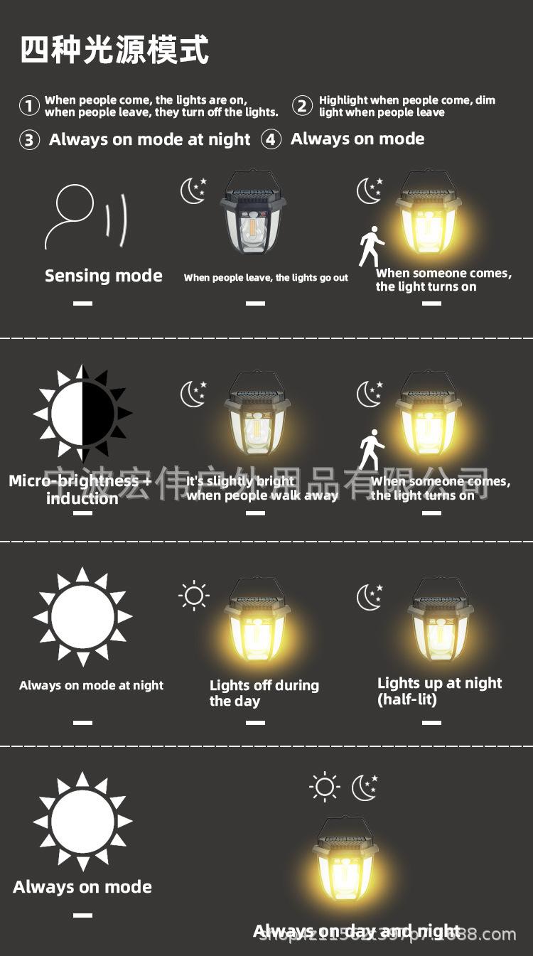 1.2.3 es el modo de luz de inducción, y 4 es el modo de luz de larga duración