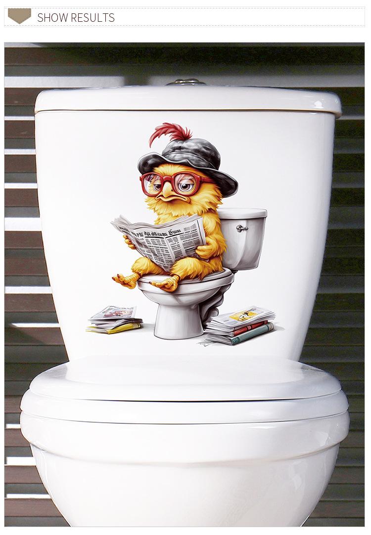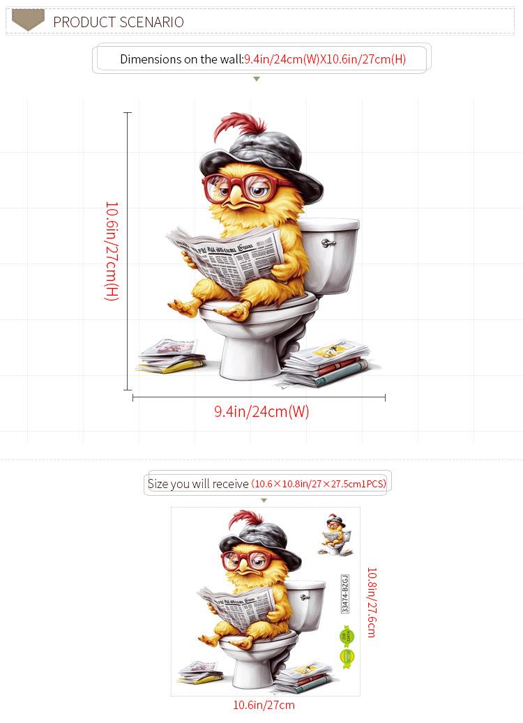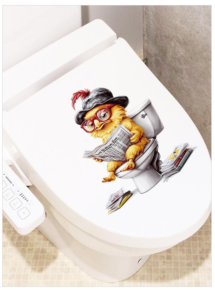 Calcomanía para Tapa de Inodoro de Gallo para Leer Periódico Calcomanía Divertida para Decoración de Pared de Baño Calcomanía de Pared de Animal Lindo 33474