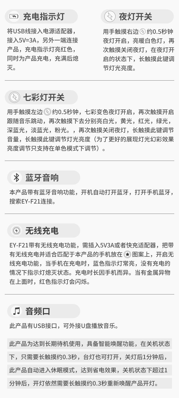 5W Blue + Bluetooth speaker + night light + wireless charging