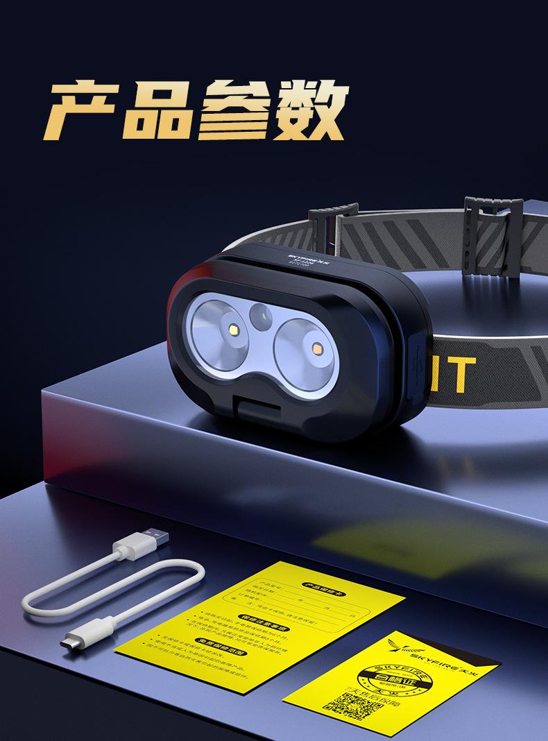 Faro Skyfire Luz Fuerte Super Brillante Sensor Exterior Larga Duración de Batería Pequeño Montado en la Cabeza Modelo Nuevo 2023 para Pesca