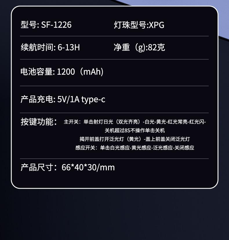 SF-TD-1226 black four-light sensor headlamp (White + Yellow + red + daylight) suit, SF-TD-1226S upgraded black...