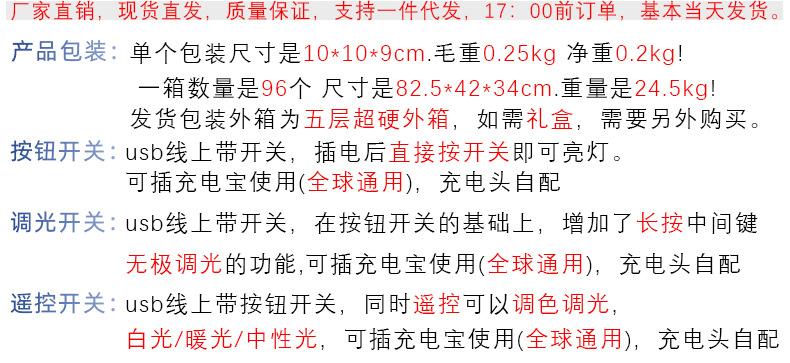 Usb [warm light] one-speed switch, Usb [three colors] multi-level dimming model, Usb [seven color gradient]
