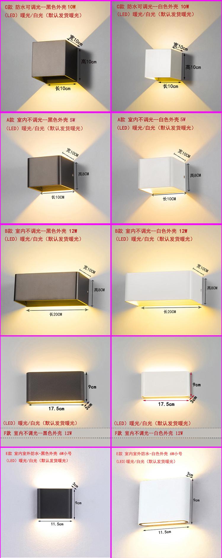 Lámpara de pared LED para exteriores, impermeable, moderna y sencilla, cuadrada, para villa, pared exterior, patio, pasillo, interior, lámpara de pared superior e inferior de doble cabezal