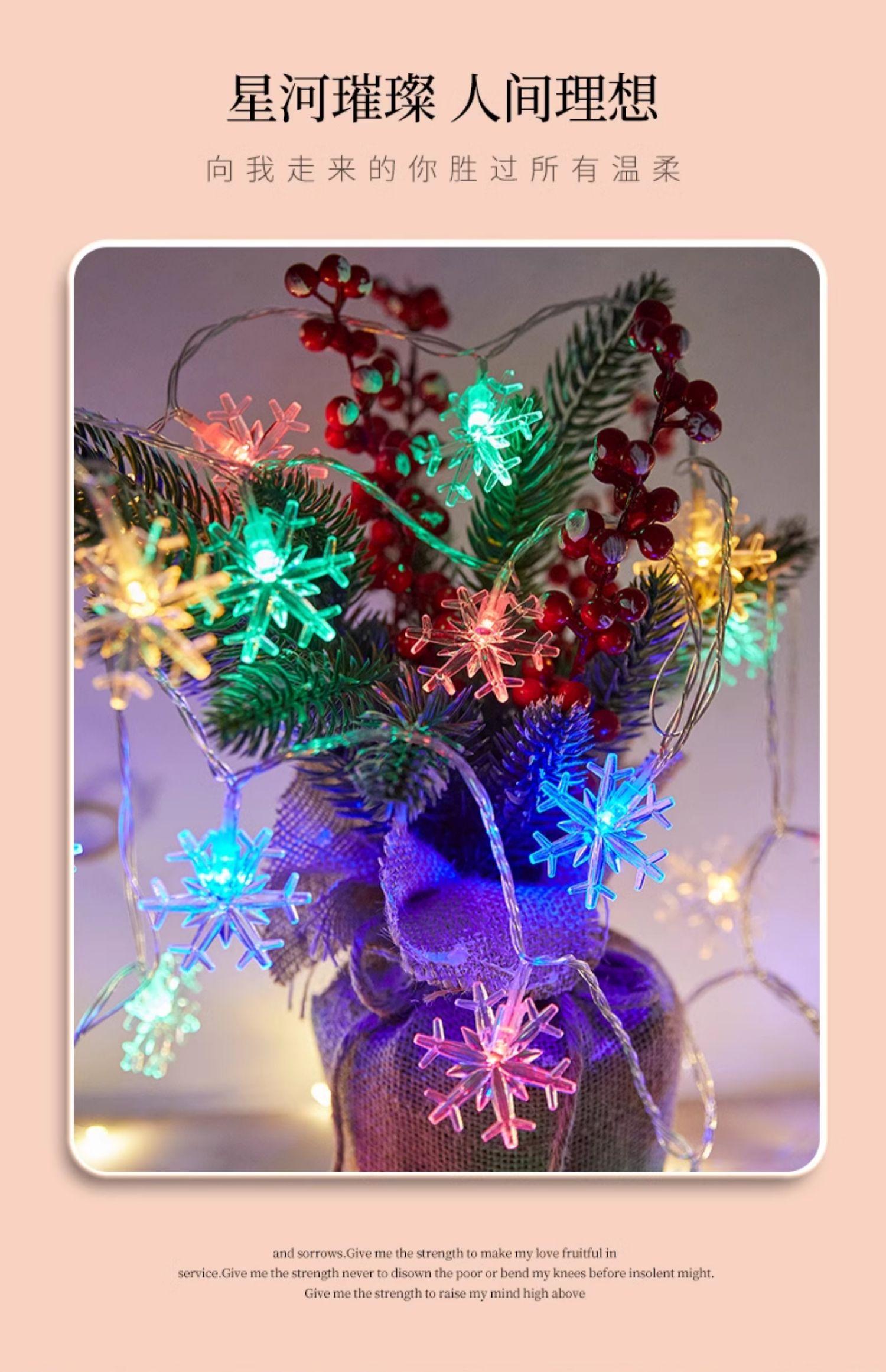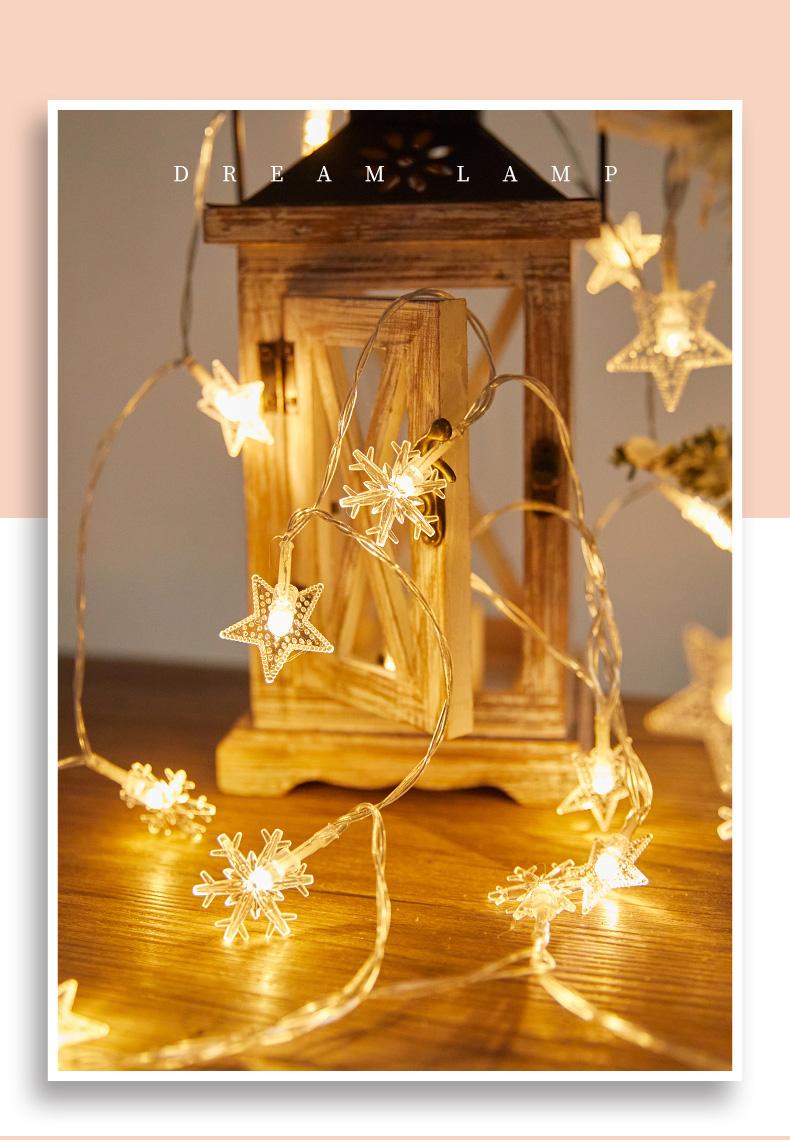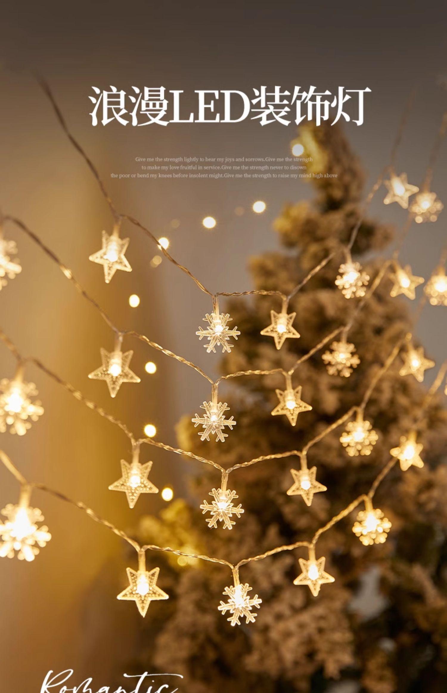Decoraciones navideñas LED copo de nieve pequeñas luces intermitentes luces de cadena estrellas diseño de escena al aire libre atmósfera luces de árbol