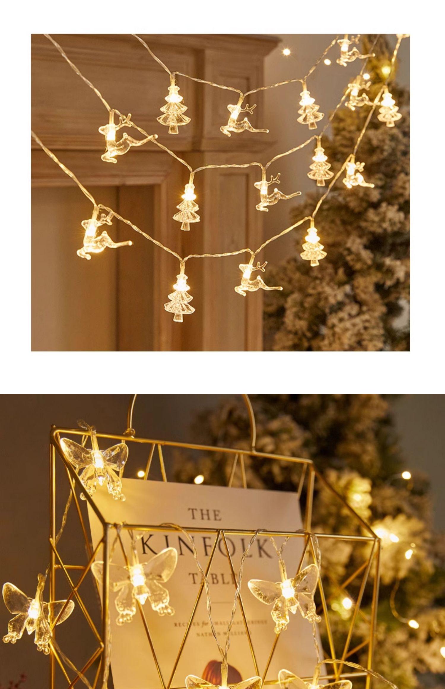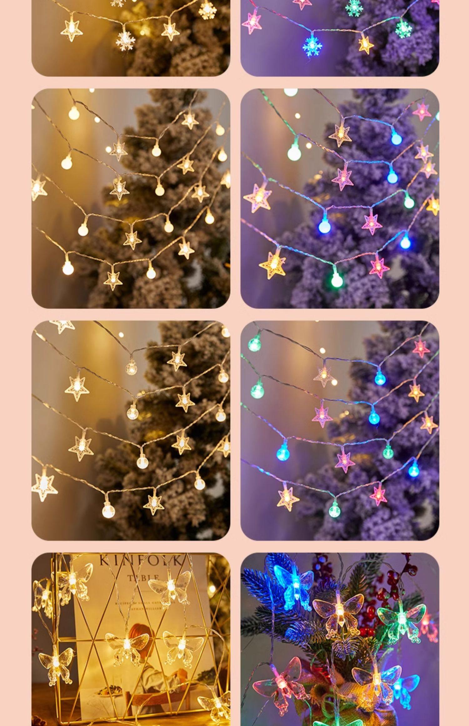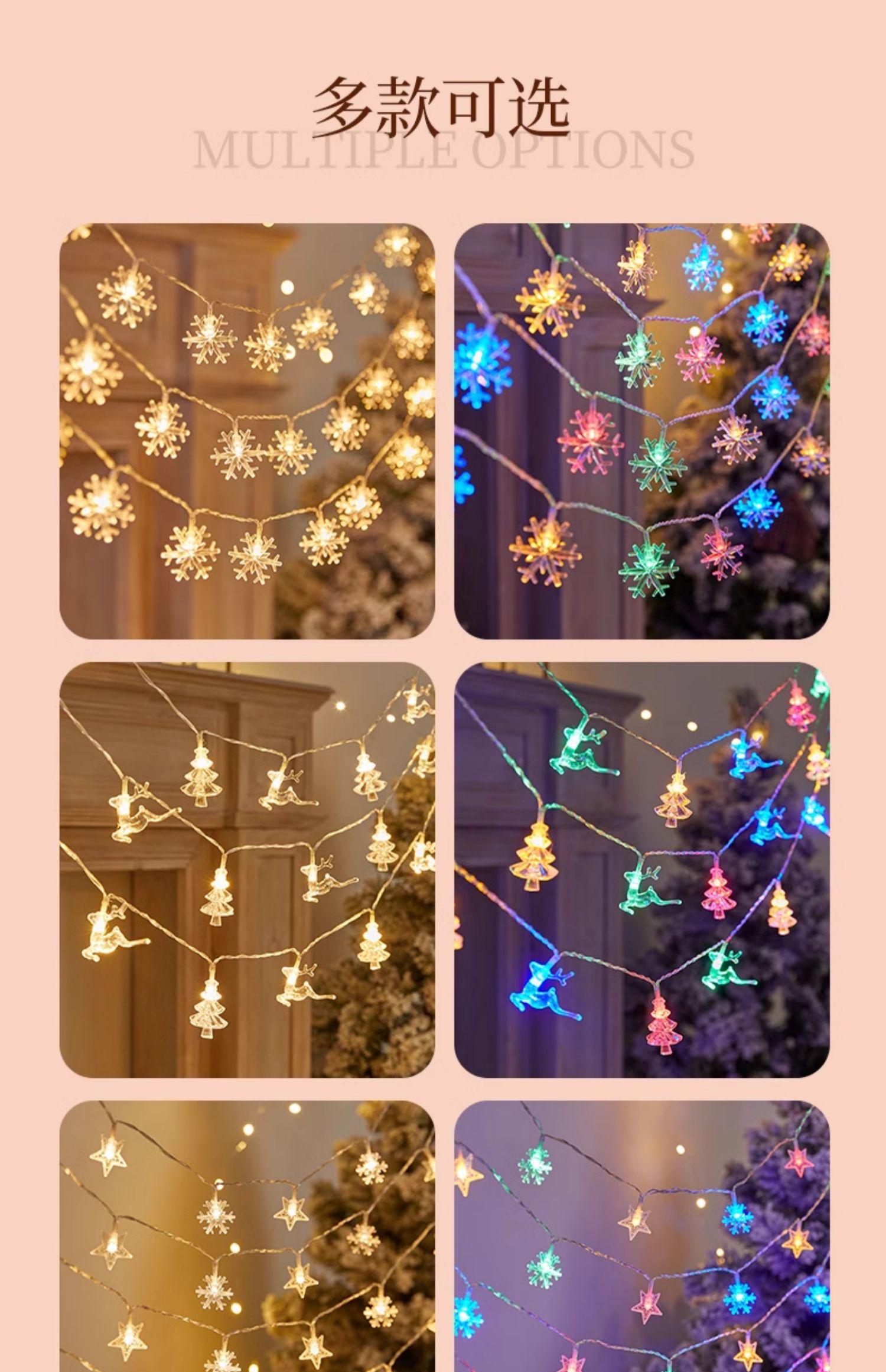 Decoraciones navideñas LED copo de nieve pequeñas luces intermitentes luces de cadena estrellas diseño de escena al aire libre atmósfera luces de árbol