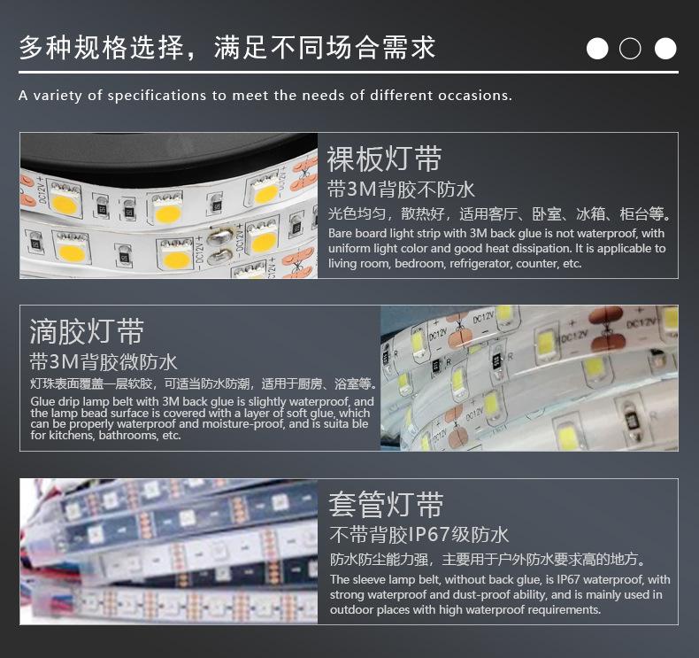 Tira de luces LED autoadhesiva de bajo voltaje 5050 monocromática de 120 luces RGB de una sola fila, colorida, de doble color, para decoración de interiores y exteriores.