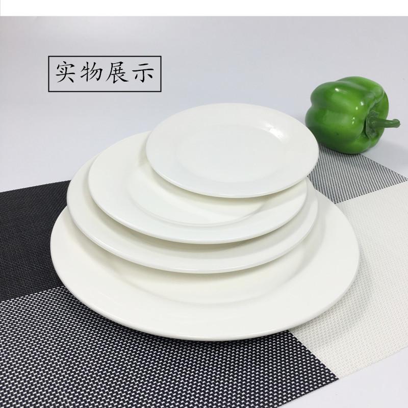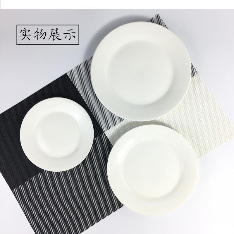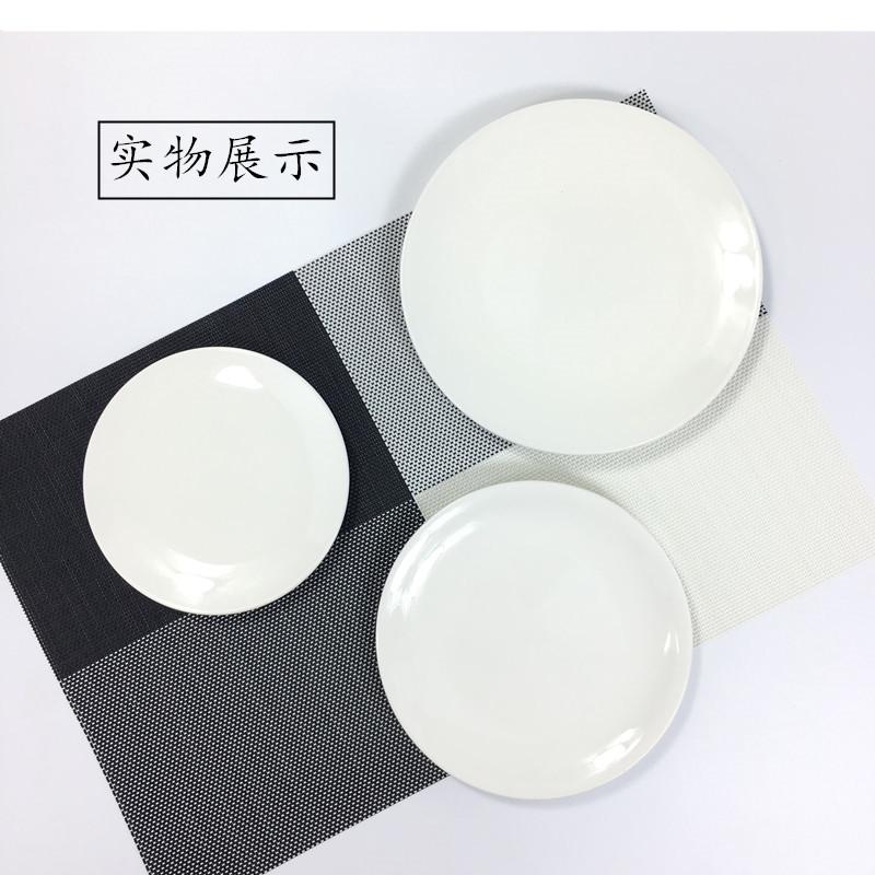 Plato de carne de cerámica blanca pura, plato occidental redondo, plato doméstico, plato poco profundo, plato plano, vajilla occidental