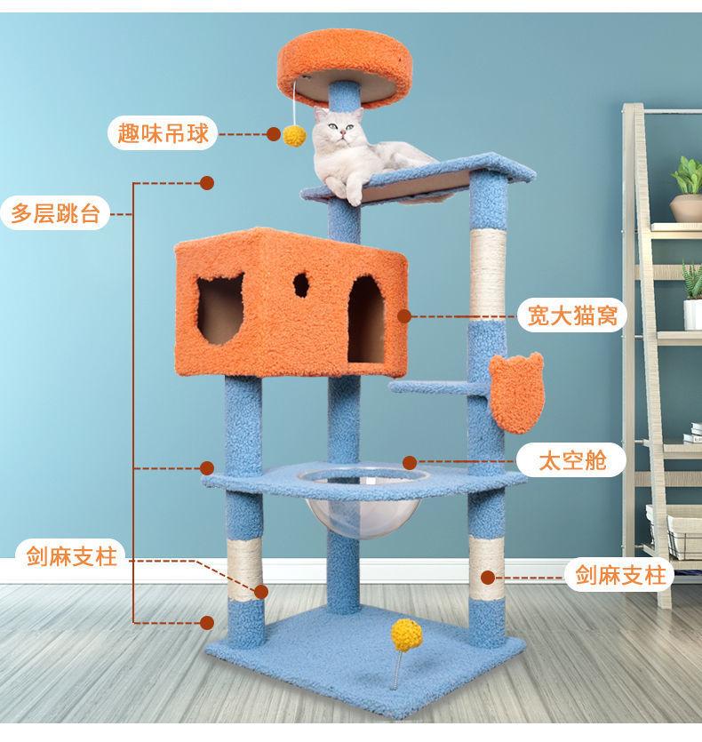 Estante de escalada para gatos, nido grande para gatos, árbol universal para las cuatro estaciones, cápsula espacial de madera maciza integrada, tablero rascador para gatos, villa para gatos, juguete para gatos