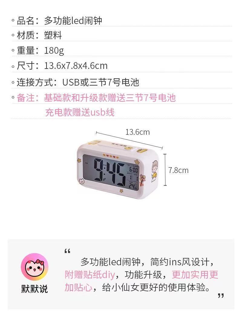 Reloj despertador digital electrónico luminoso para estudiantes, dormitorio creativo para niños