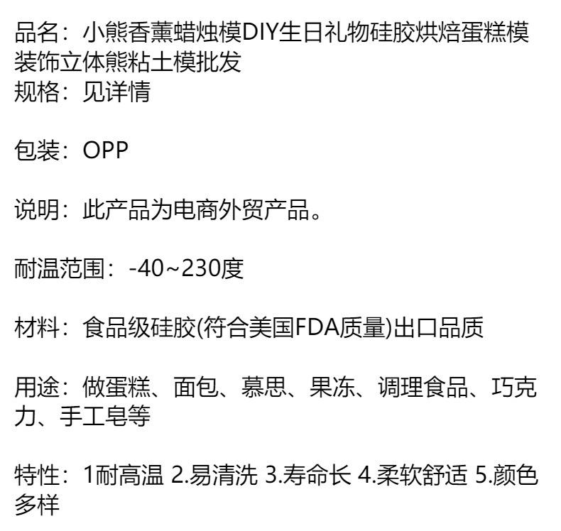 Molde de Vela de Aromaterapia de Oso DIY Adornos Hechos a Mano Molde de Silicona Molde para Hornear Pasteles Molde de Yeso para Aromaterapia de Oso Tridimensional