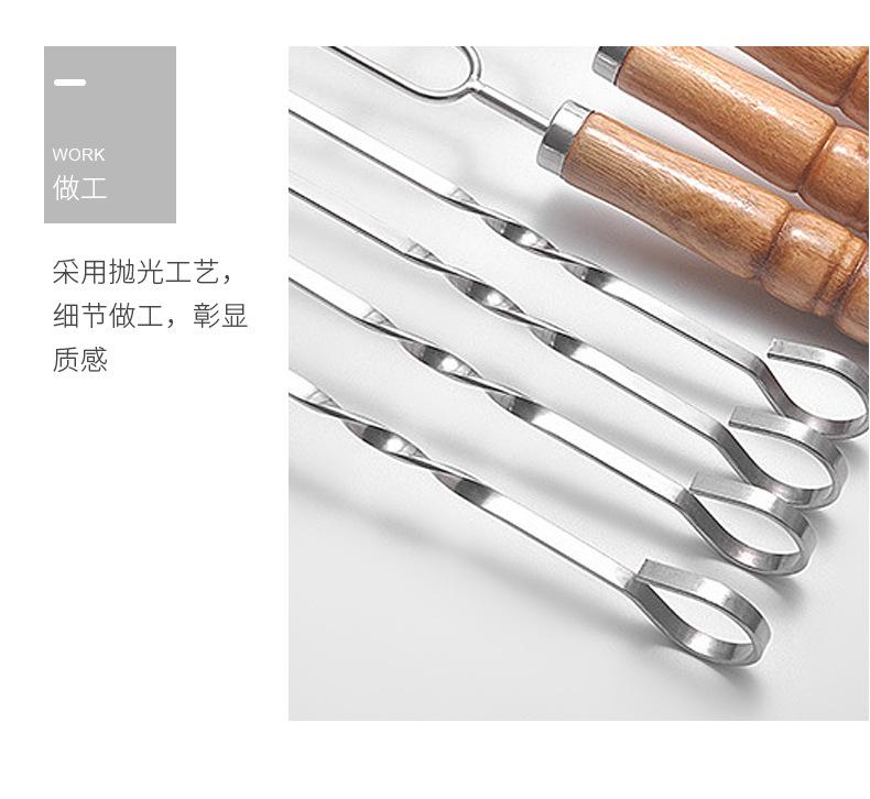 Aguja para Barbacoa al Aire Libre Acero Inoxidable Brocheta para Barbacoa Doble Punta Brocheta para Barbacoa Mango de Madera de Haya Juego de Parrilla Utensilios para Barbacoa Americana
