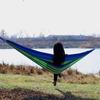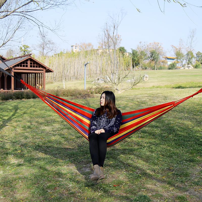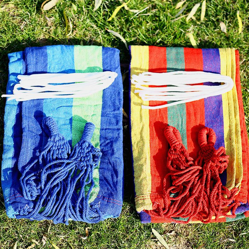 La imagen de abajo muestra una hamaca de lona azul. Este modelo es más grueso.