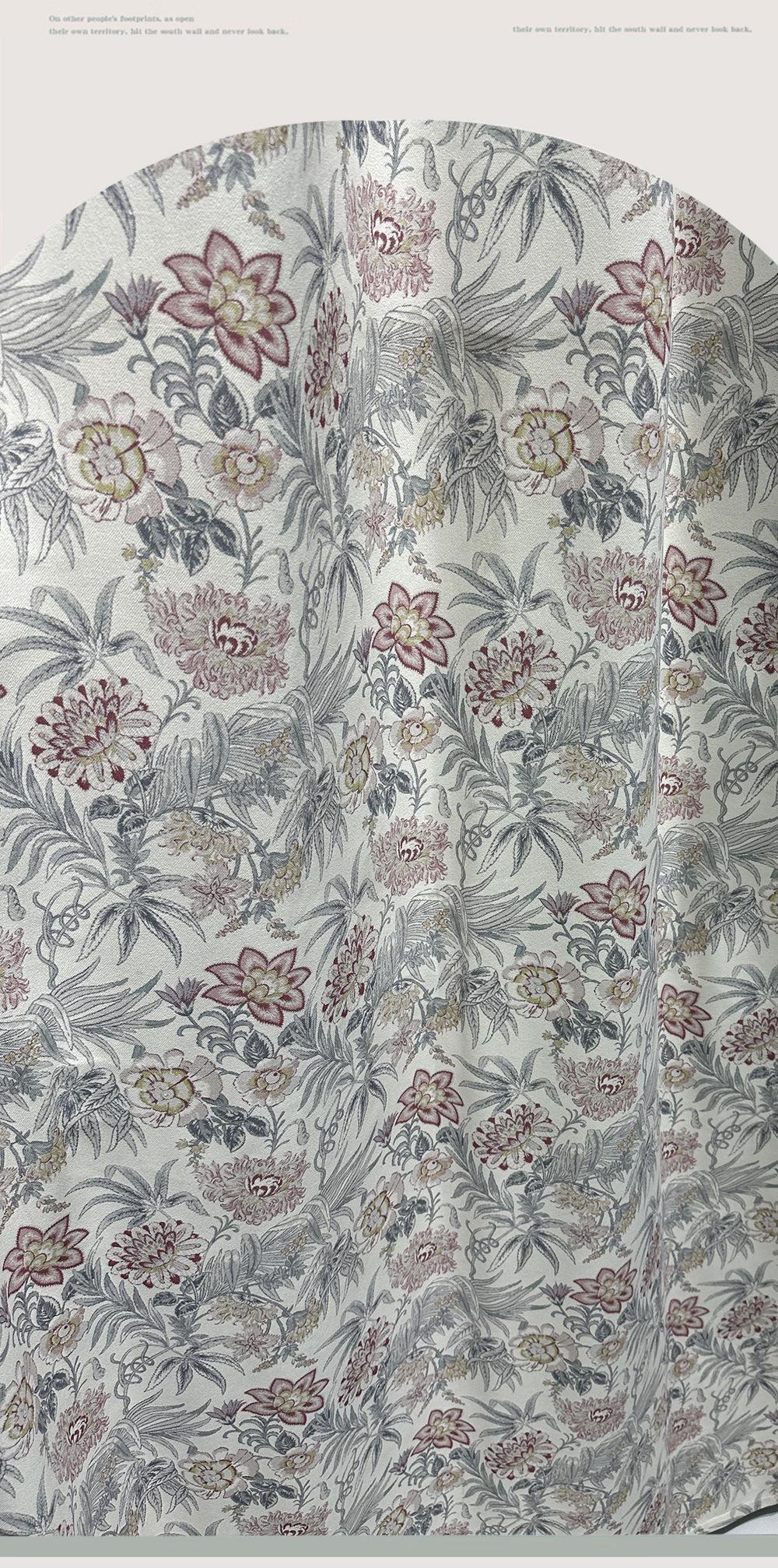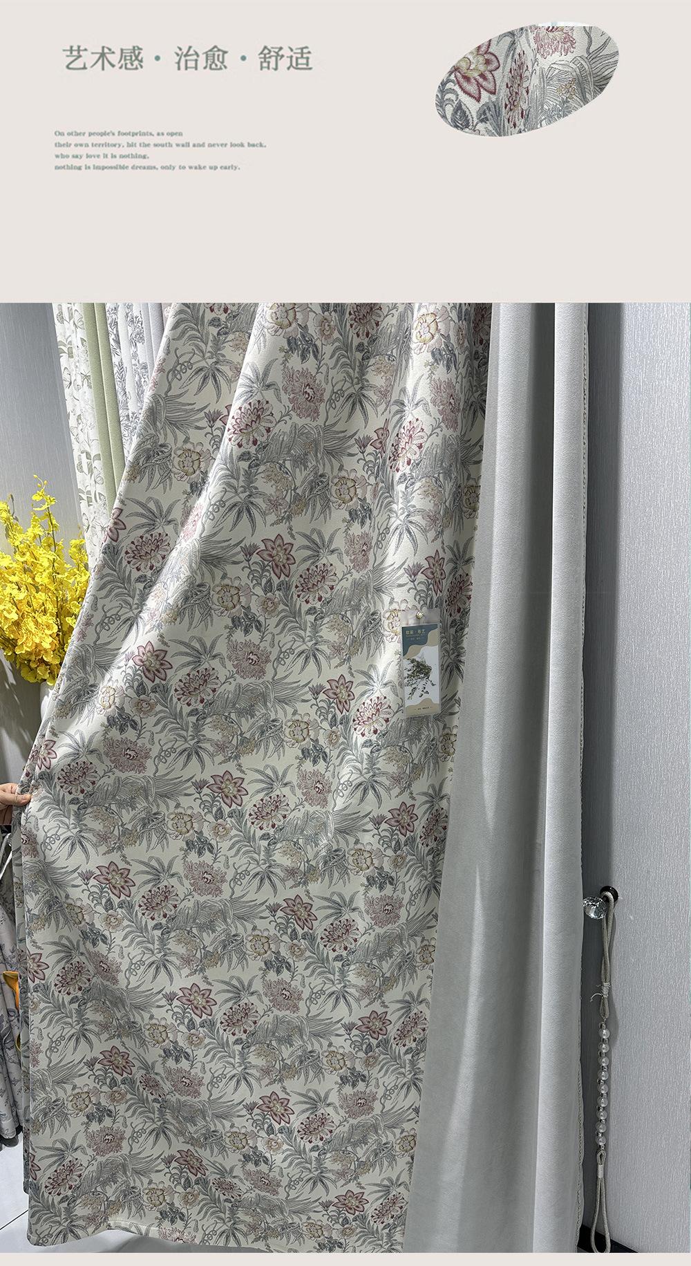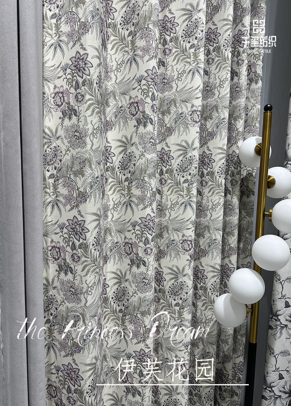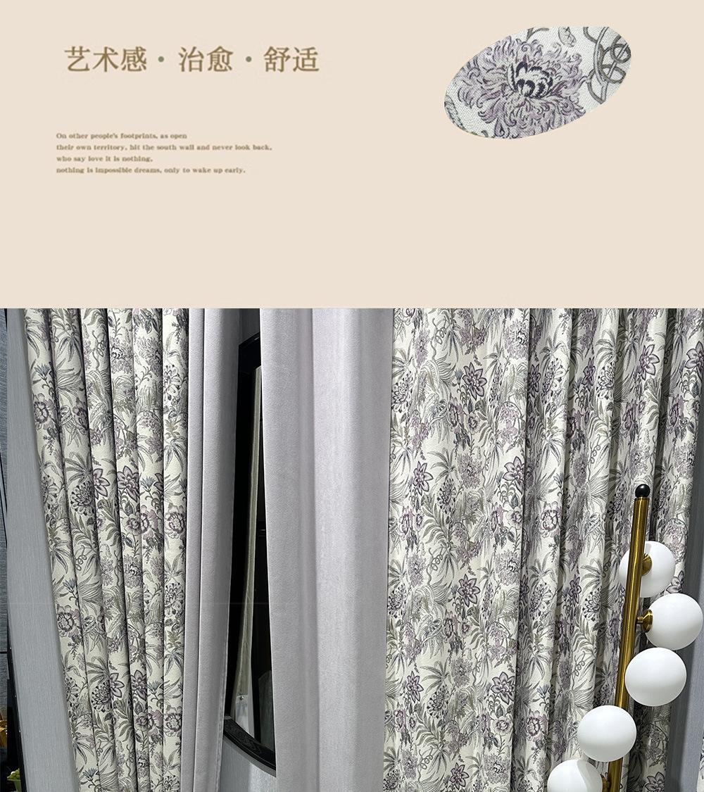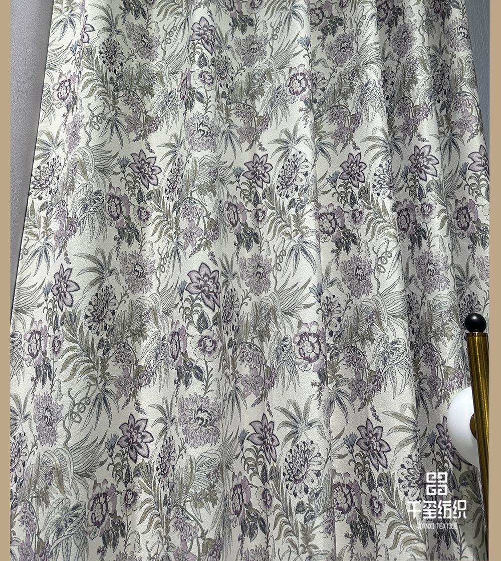 Nueva cortina opaca de chenilla gruesa con impresión digital americana, color morado y gris, para dormitorio, sala de estar, ventanal